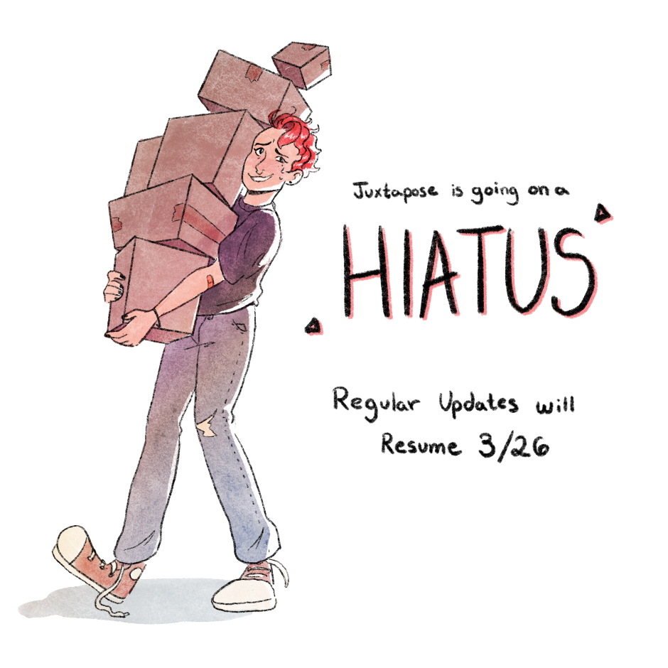 Juxtapose started as an interactive Inktober comic and a way to practice hatching. I drew the first page and had my followers vote on what happened next, page by page. I had no idea what the story would blossom into (originally I thought it was going to be about a demon who calls people with riddles but here we are). Thanks to everyone’s input, Juxtapose is a comic about discovery, mystery, and finding a home in unexpected places.