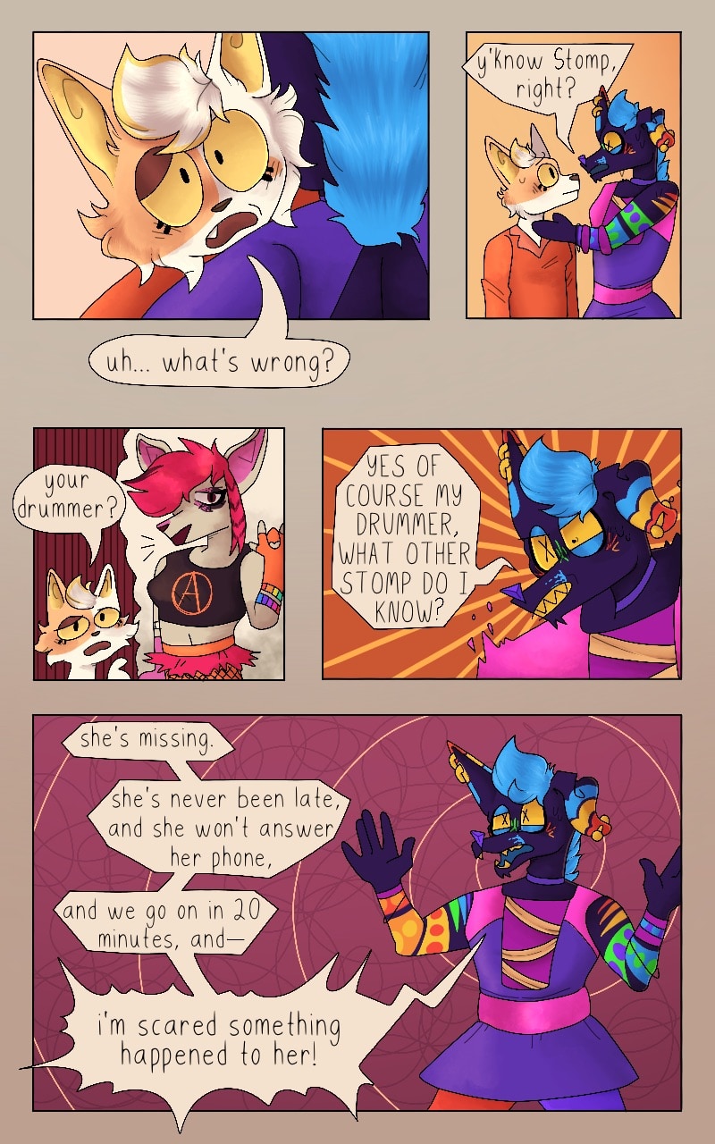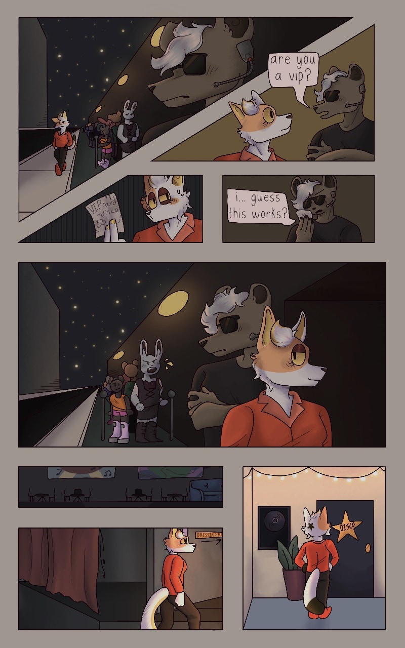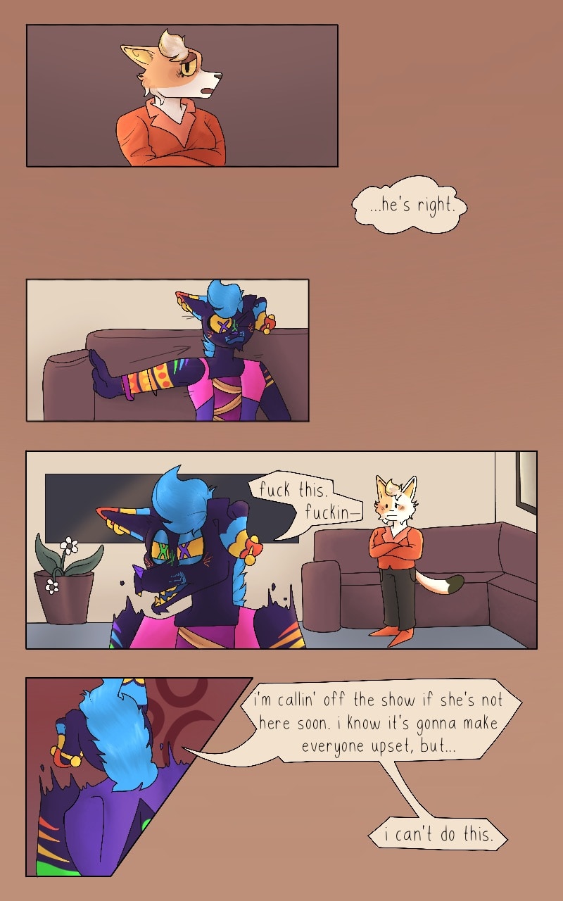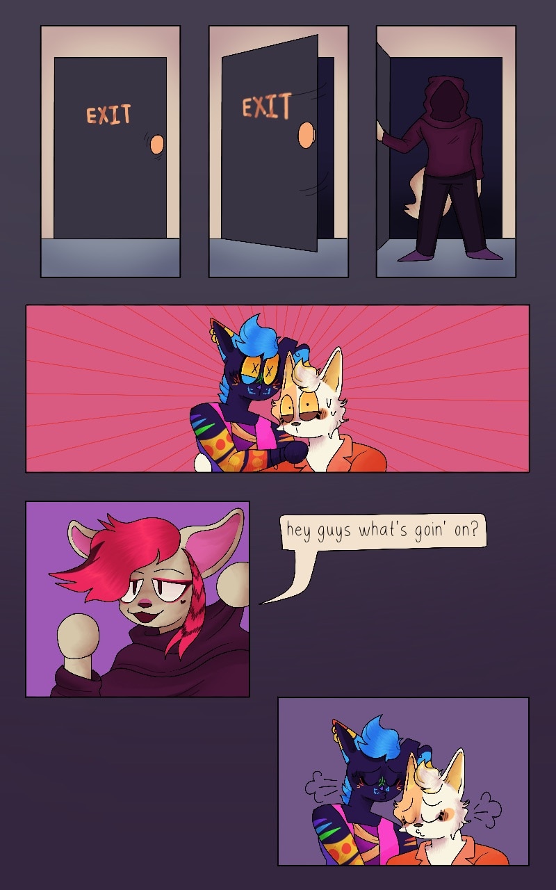 disco near pisses his pants in fear. calico tries to calm him down, but her attempts are in vain.