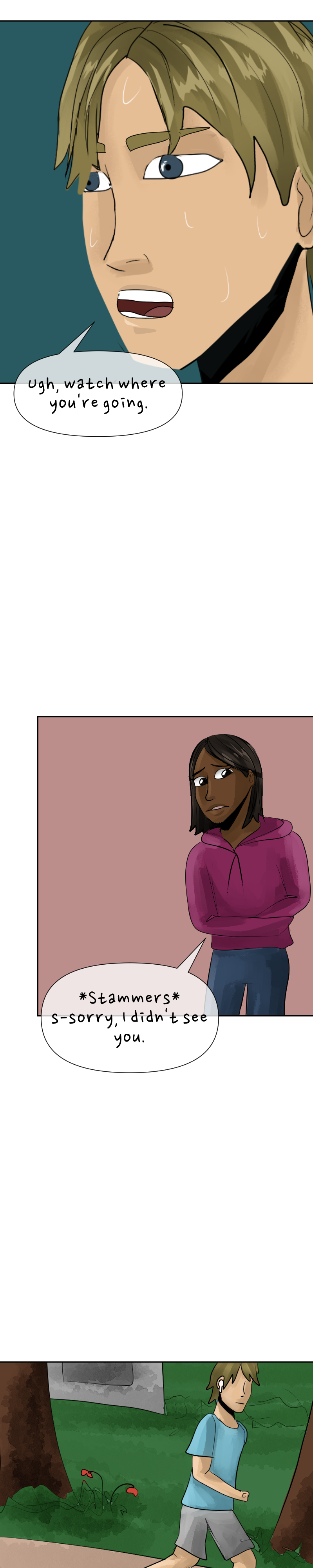 As she looks through the eyes of others, Nile sees herself as unconfident and awkward, but does her best to live up to everyone else's expectations. As she digs deeper to find her true self, she not only discovers supernatural powers but the long history behind them, leading all the way back to ancient times, and the only person who can help her control them is the rude guy school. Insta: @uzomawebtoons