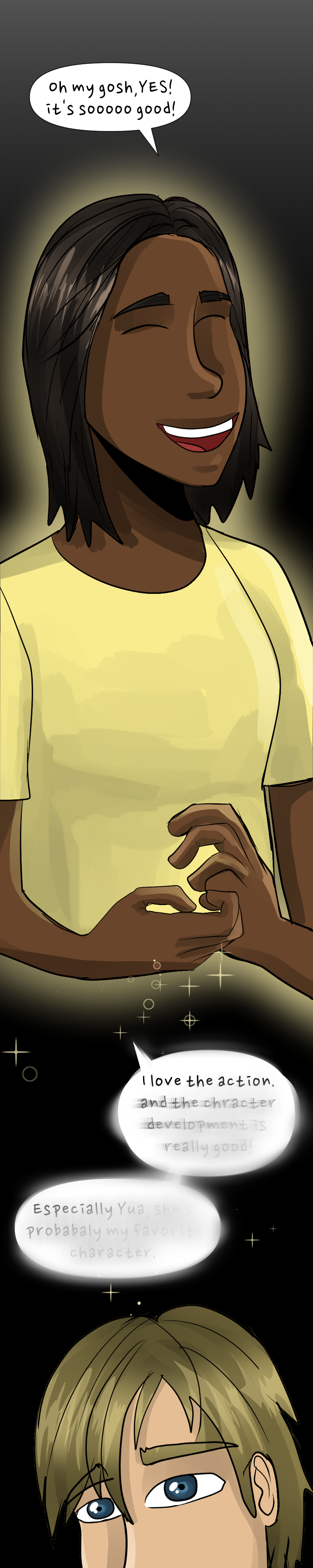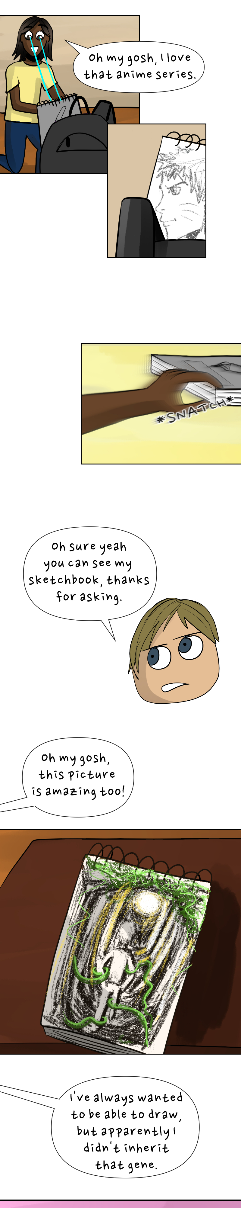 As she looks through the eyes of others, Nile sees herself as unconfident and awkward, but does her best to live up to everyone else's expectations. As she digs deeper to find her true self, she not only discovers supernatural powers but the long history behind them, leading all the way back to ancient times, and the only person who can help her control them is the rude guy school. Insta: @uzomawebtoons