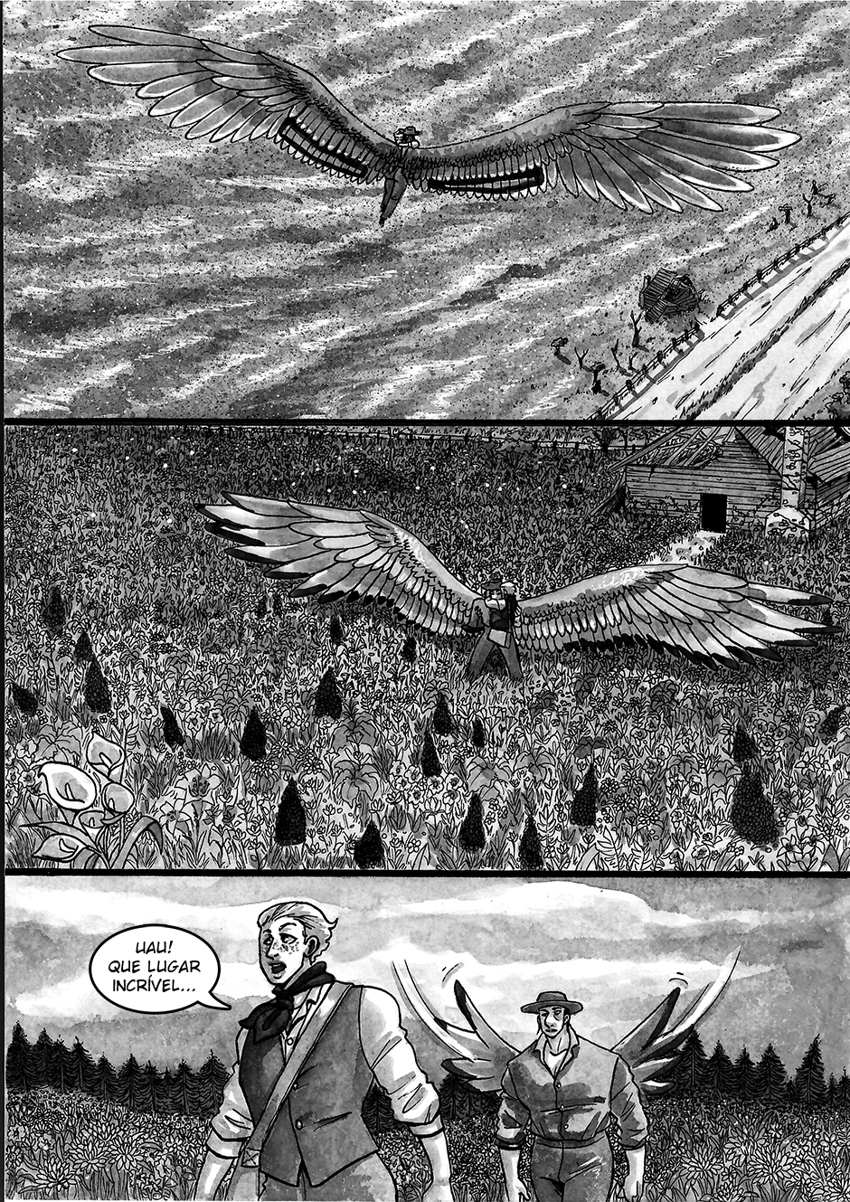 Os episódios serão postados em partes (de 4 em 4 páginas) toda terça-feira. Para acesso antecipado, dê uma olhada nas opções do https://apoia.se/rebirthofshadows