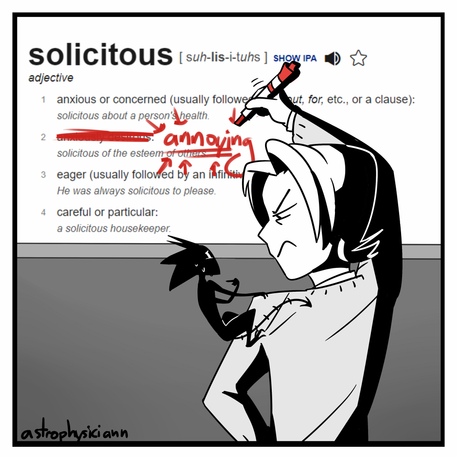 Meet Sollicitus, my very own little demon. He spends most of his time awake being a jerk and making me worry-- a lot. But as much as it sucks, I'm stuck with him for the foreseeable future, so I guess I'll just have to get used to it.