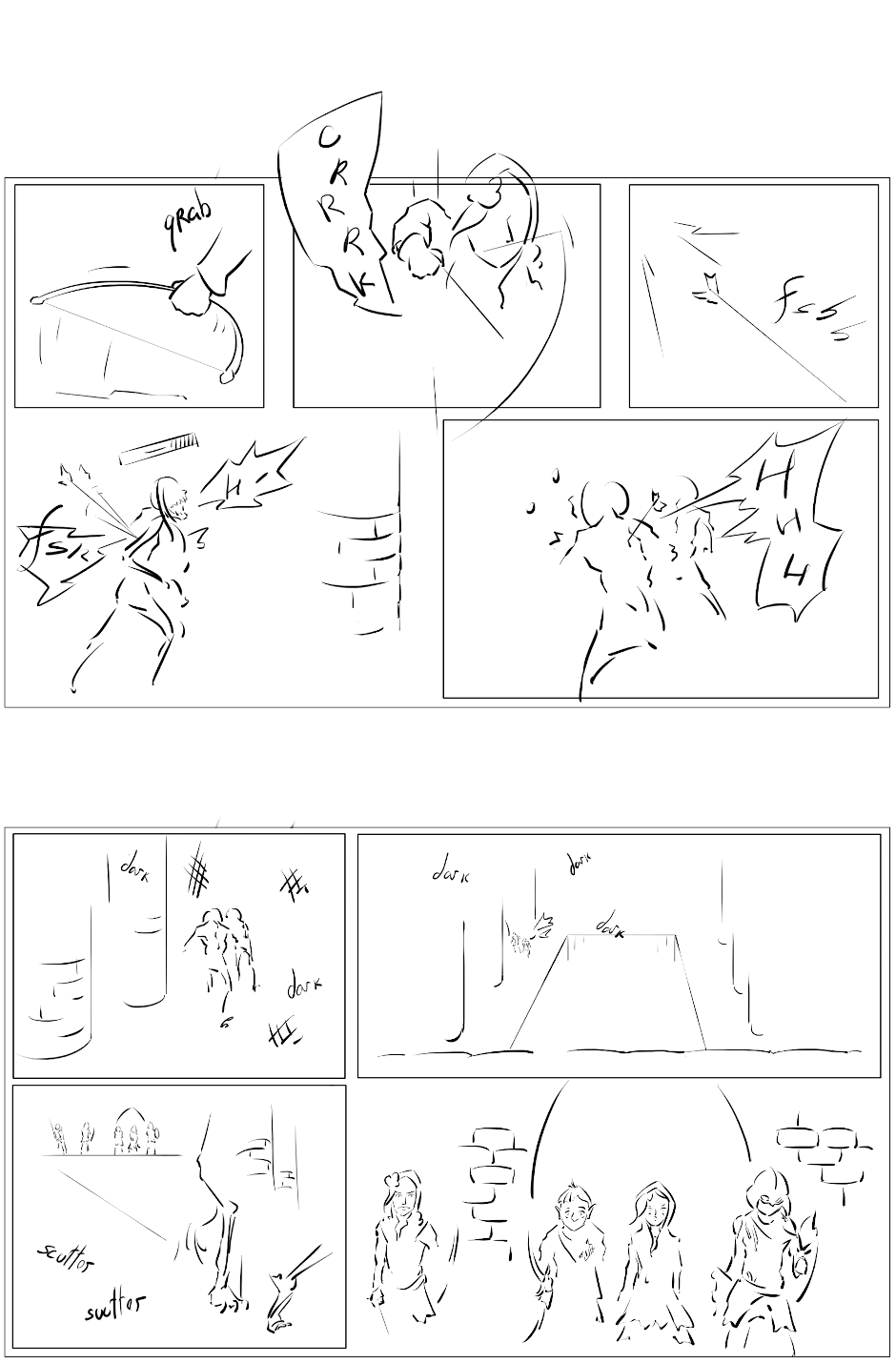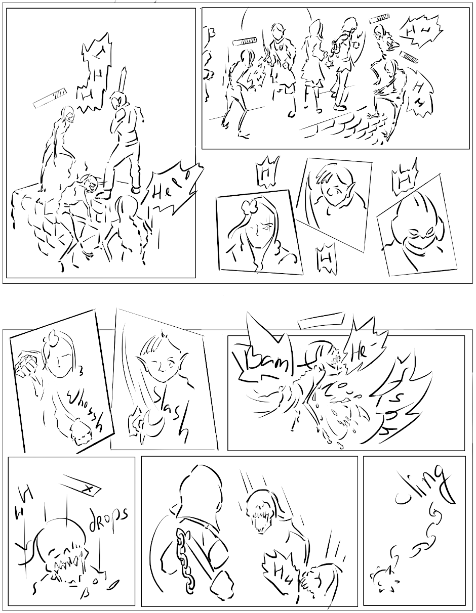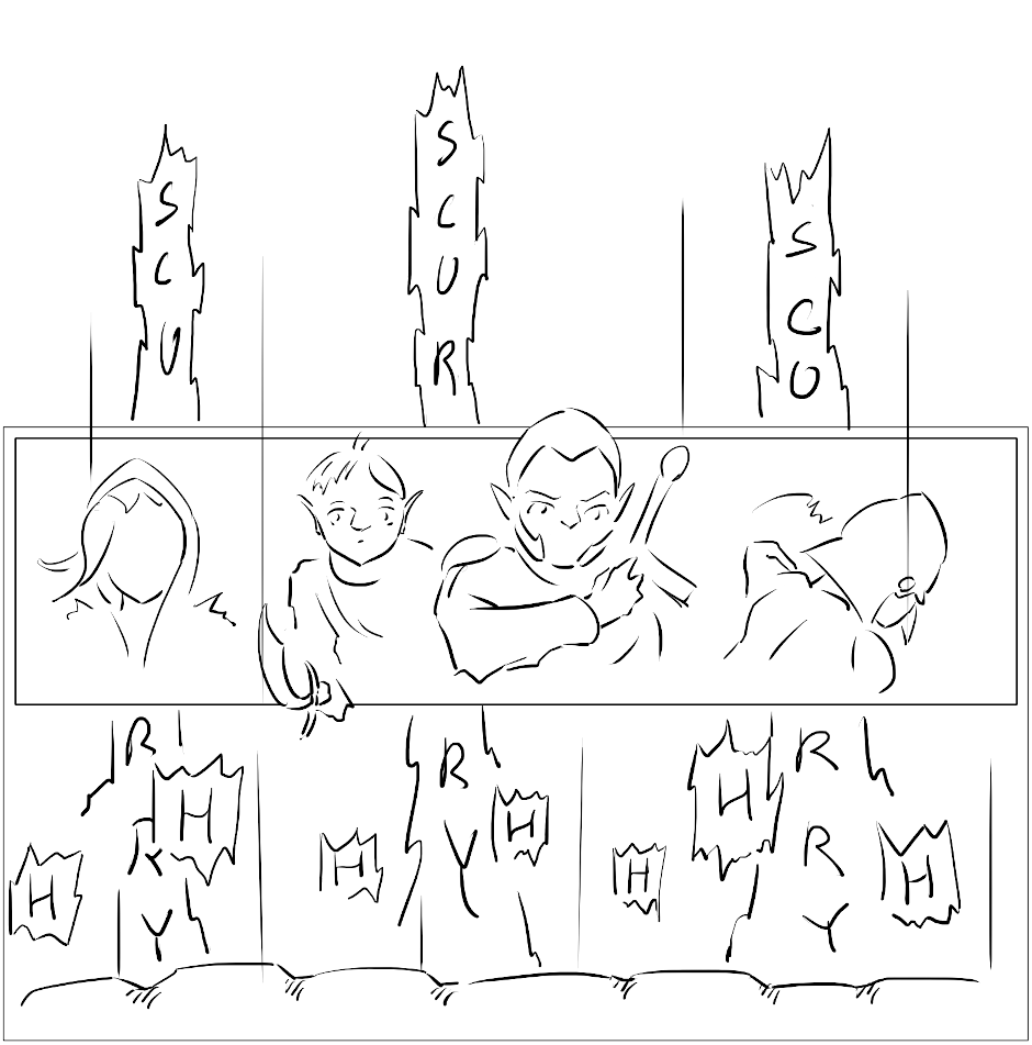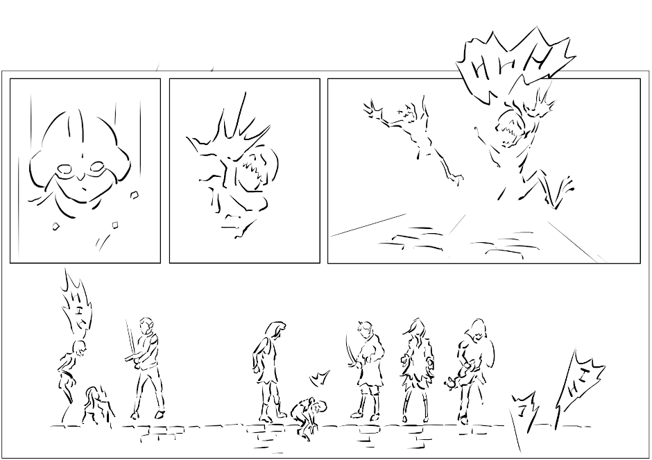 Dust of Aradon is a story told in comic about ongoing (at the moment) fantasy campaign in homebrew setting, starring five real experienced players as long as they don't die. The story is told true to how players interacted with the world and their lines / attitudes are portrayed as close to how they were in reality as im capable of drawing.
