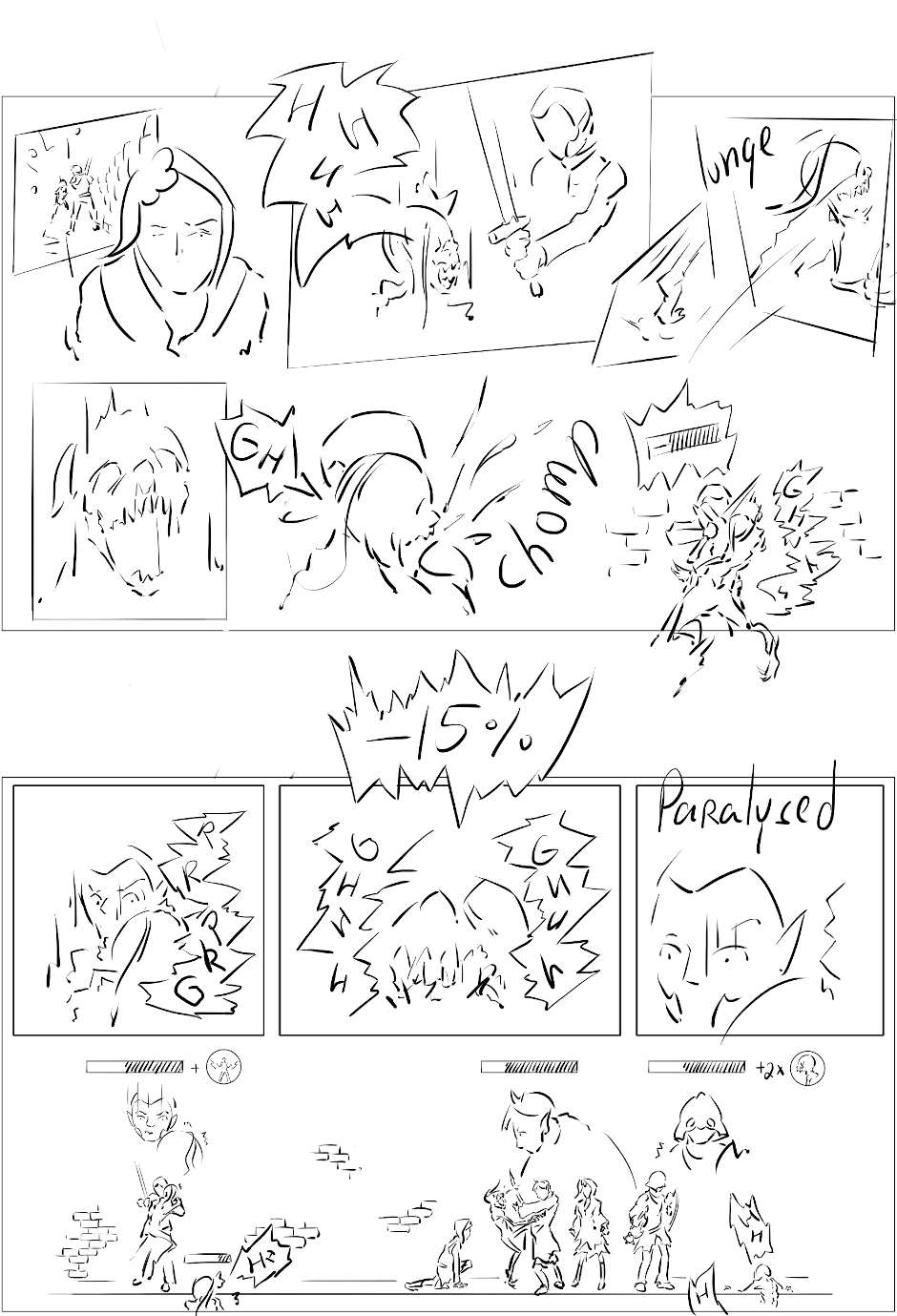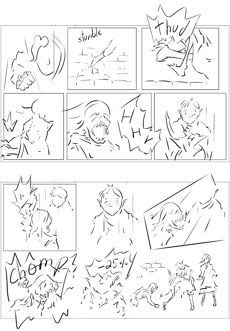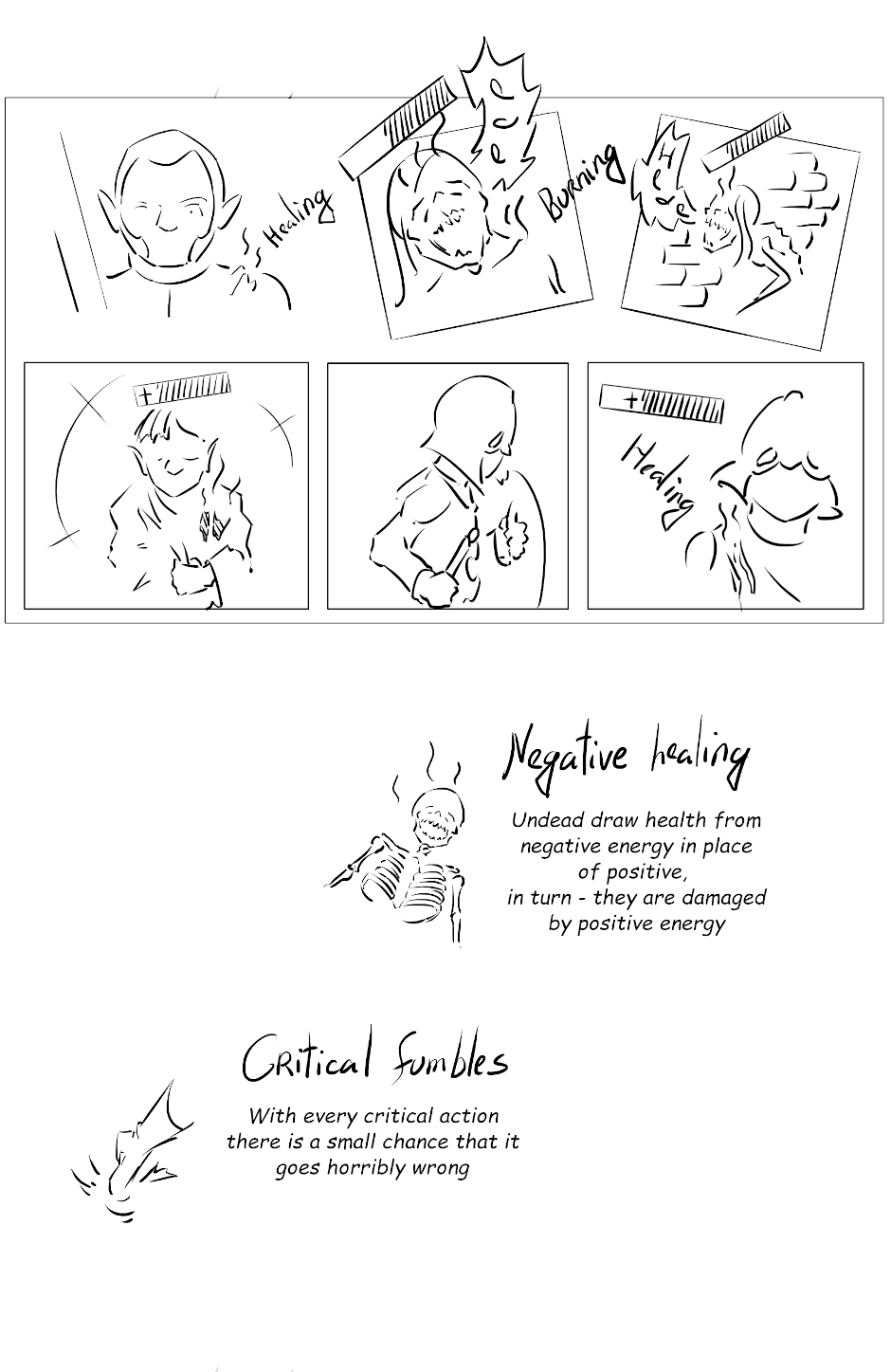 Dust of Aradon is a story told in comic about ongoing (at the moment) fantasy campaign in homebrew setting, starring five real experienced players as long as they don't die. The story is told true to how players interacted with the world and their lines / attitudes are portrayed as close to how they were in reality as im capable of drawing.
