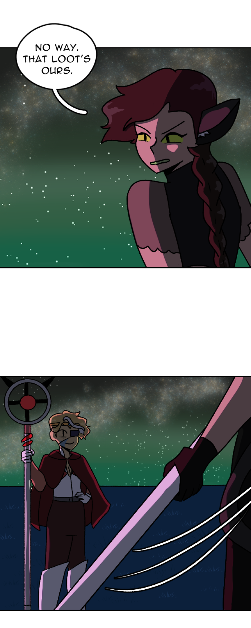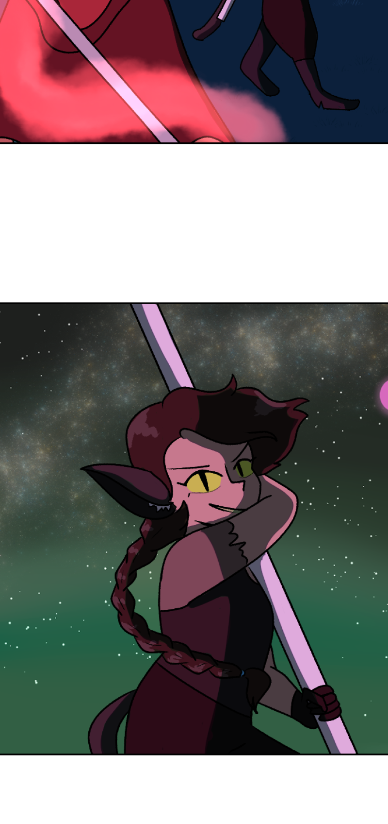 She’s the princess of an empire. He’s the descendant of a now-disgraced family of warriors. When Aleeyah picks up an amulet deep within her family’s archives, she and Kalen find themselves separated for the first time in years. With tensions boiling between the rich and posh sky kingdom of Zeunia and the mineral-rich colony of Juno below, the friendship between the two teens is tested as the universe of the Nova changes alongside them. Updates monthly on the 28th.