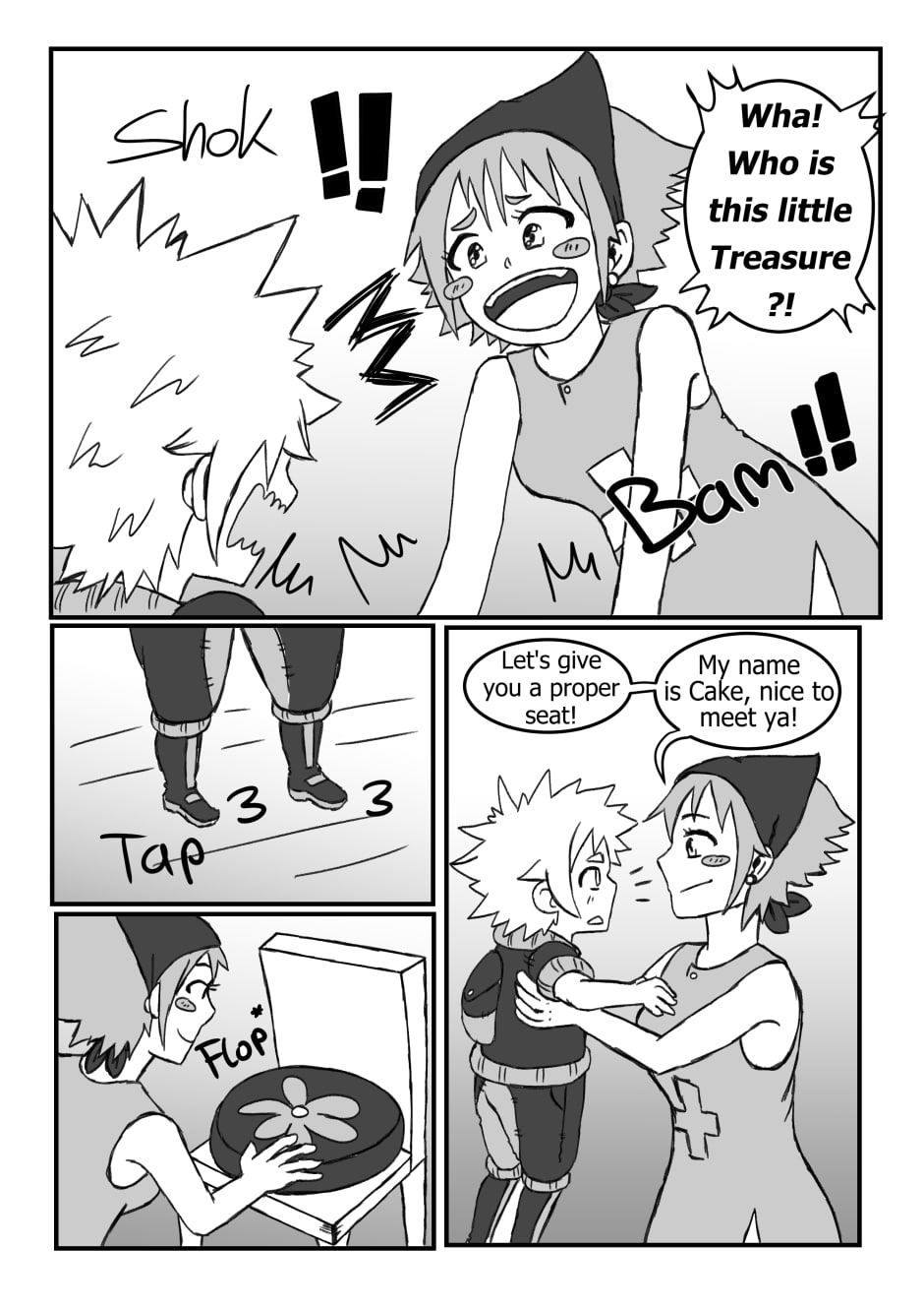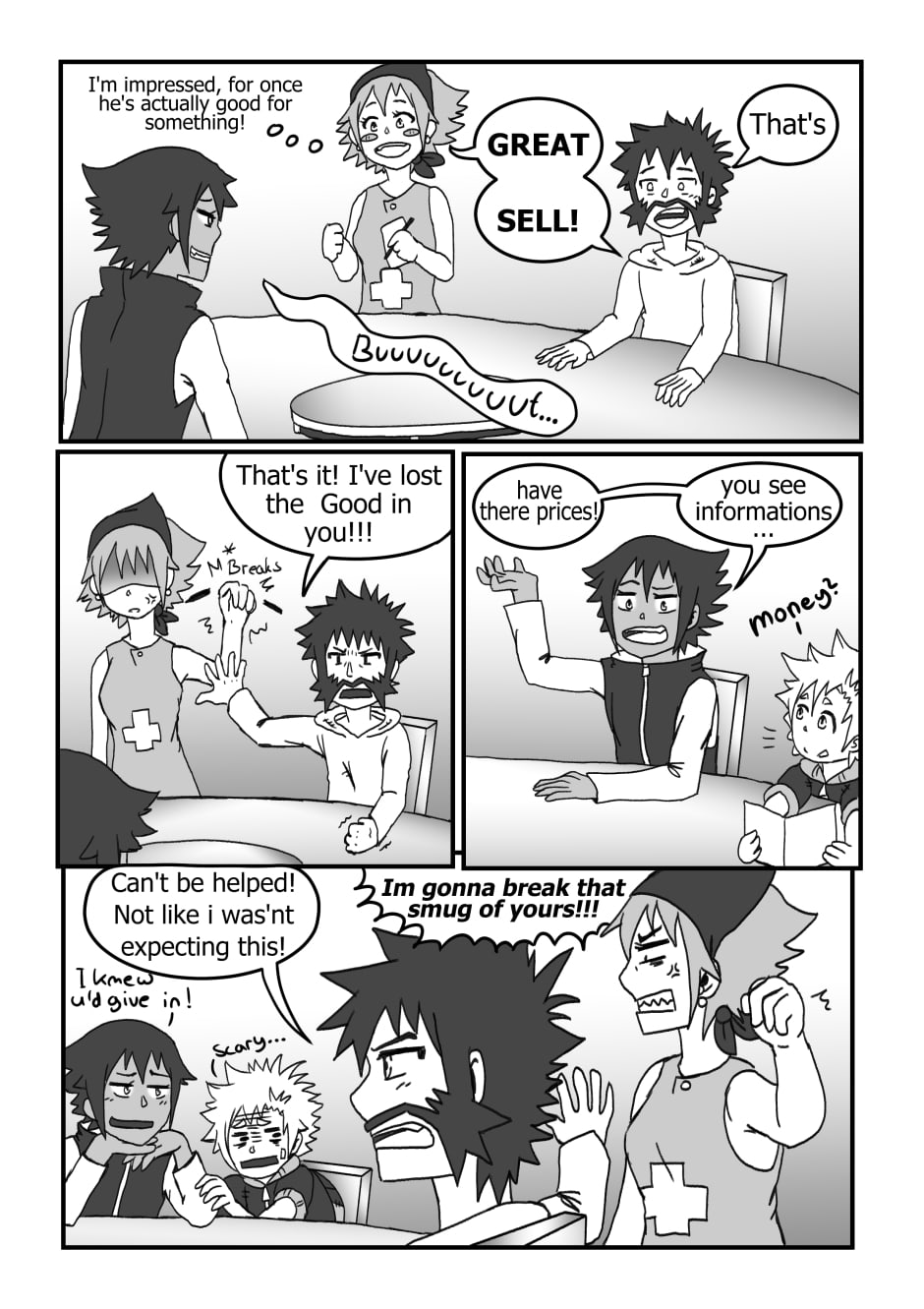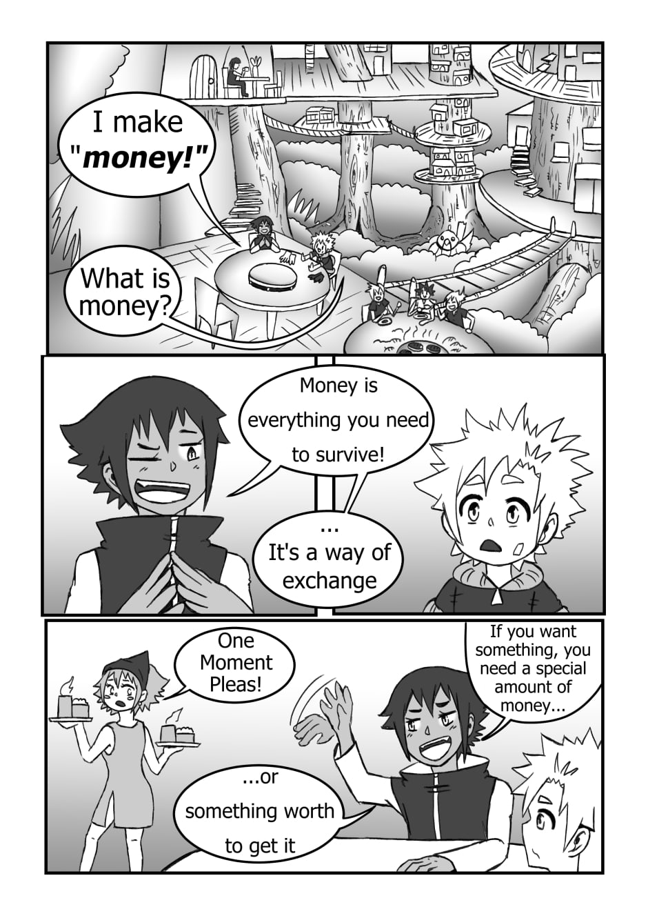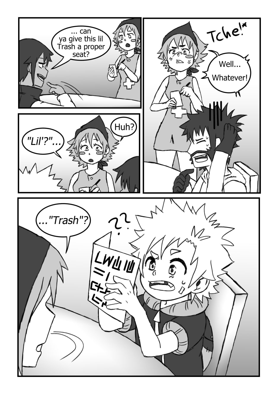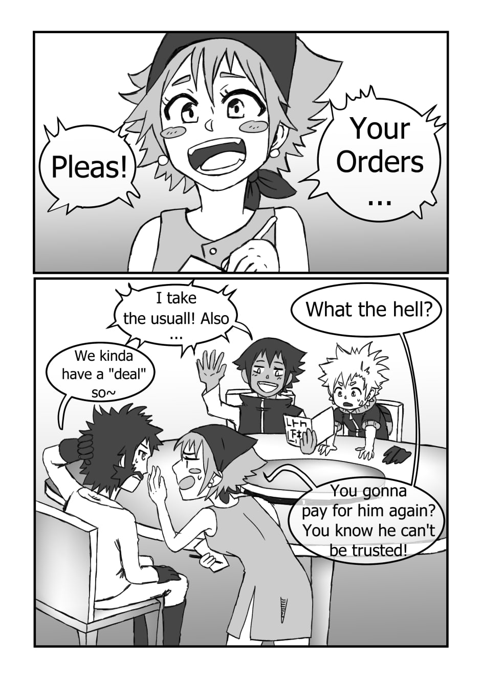 Trash, Sell and Hunter want to order at a tavern and meet Cake the waitress.