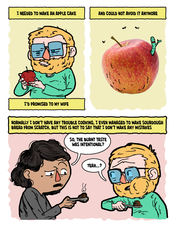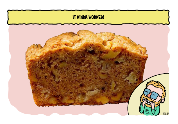 The final picture is not from the real cake/bread. It was tasty to eat and was somewhat fluffy, but still not quite there yet. The apple inside became a purê and I used oats also, this made it quite sticky inside.