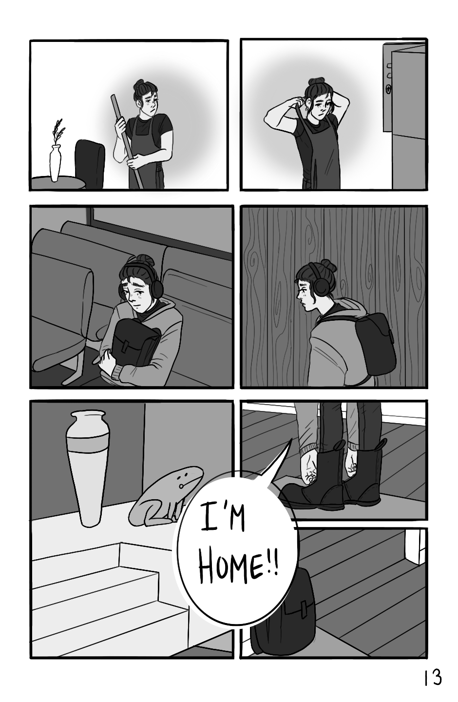 im gonna start doing one page a week bc it’s more manageable for me... anyway henri is Home :~) thanks for reading! follow me on twitter @ twitter.com/hajtaender or commission me on ko-fi @ ko-fi.com/hajtaender