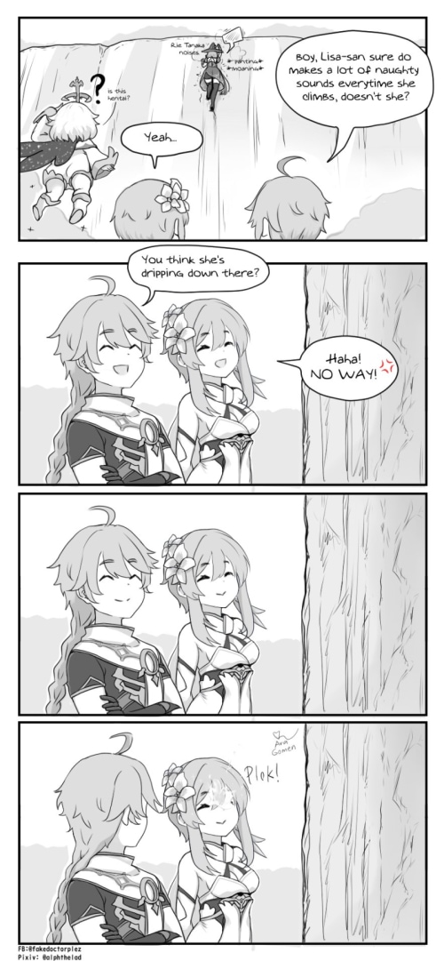 A random & short fancomic based on Genshin Impact, a free-to-play open-world RPG. It kinda depicts an alternate reality where none of the twins were captured but their powers were still stolen by the Unknown God. Now they're just running around Teyvat doing silly things.