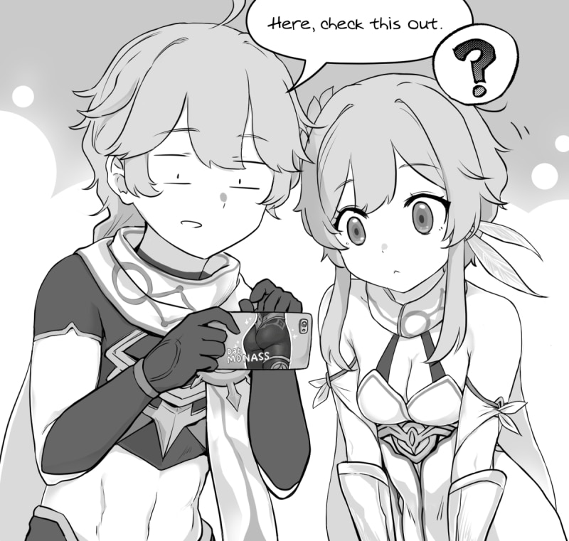 A random & short fancomic based on Genshin Impact, a free-to-play open-world RPG. It kinda depicts an alternate reality where none of the twins were captured but their powers were still stolen by the Unknown God. Now they're just running around Teyvat doing silly things.