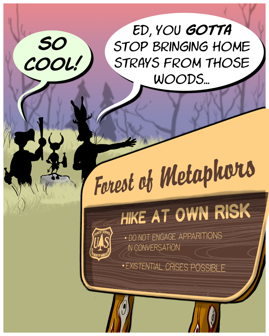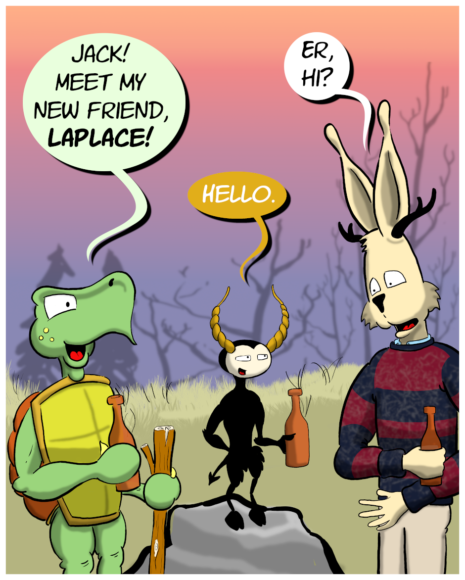 Whither the jackalope? Neither one thing, nor the other, a creature out of step with the world... perhaps we are all jackalopes, then, from time to time. Remember old school comics where smart characters hung out in a meadow all day making wry observations while absurd things interrupted them from time to time? Miss those? Yeah, this is one of those. Currently updating twice a week on Mondays and Fridays!