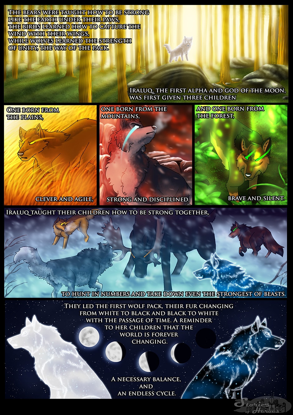 -Wolves who are balanced in speed and strength, show bravery, or are excellent trackers, are said to be a wolf of the forest, or descendants of the Alpha of the Forest.