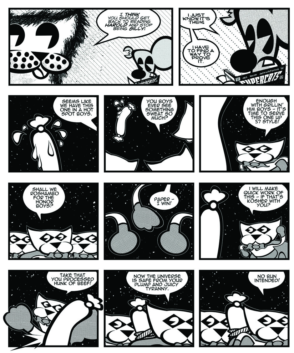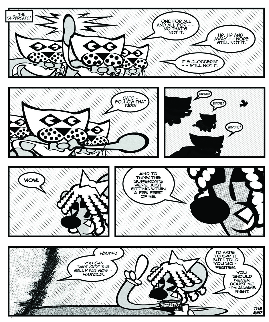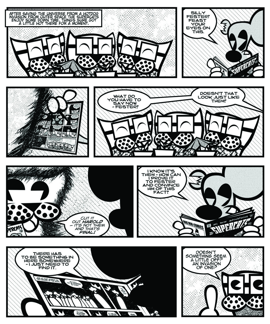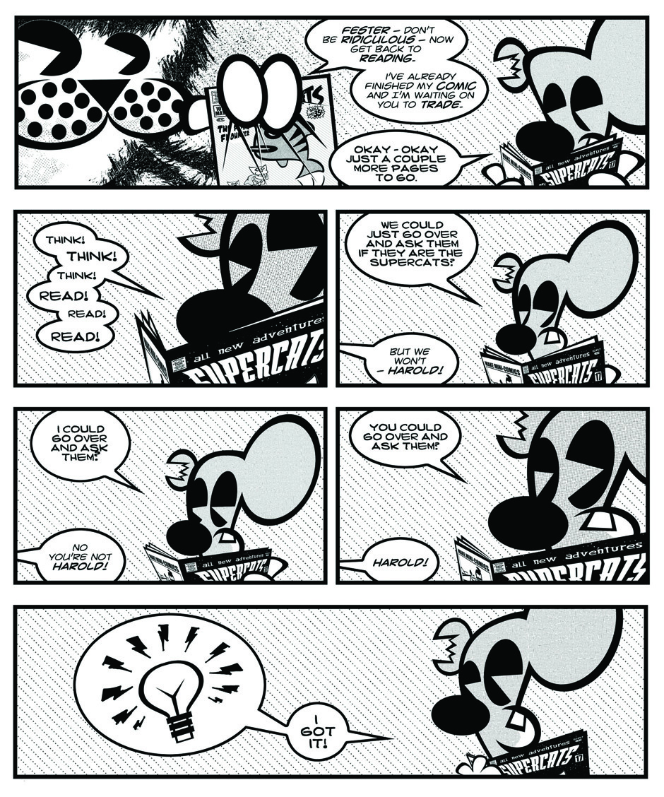 Harold thinks he has discover the true identities of the Supercats (his favorite comic characters).