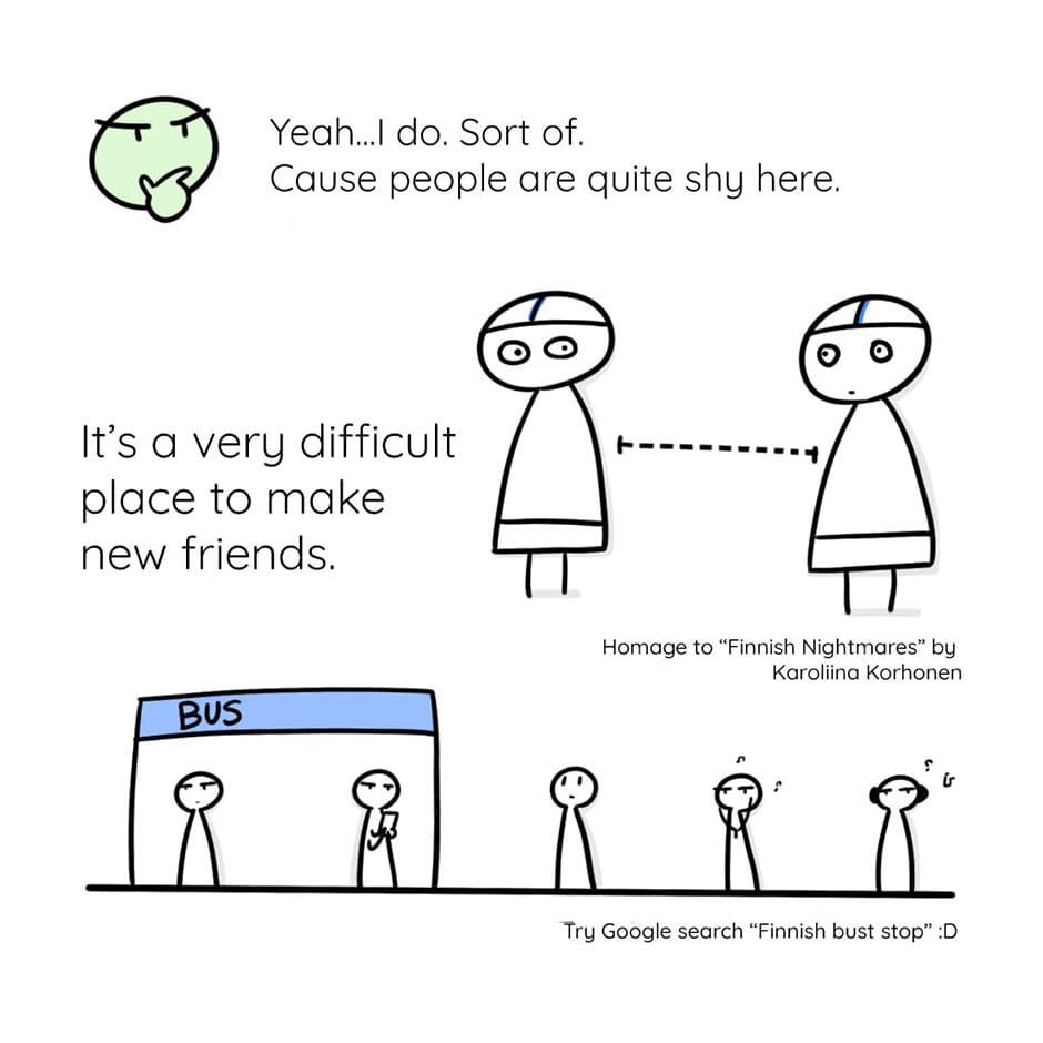 So if you consider yourself an extroverted game creator, you might find living in this northern country a bit boring and lonely. 🤔 But if you are an introverted game creator who likes to keep your personal space, well, welcome to Finland! 😎💡⛄
