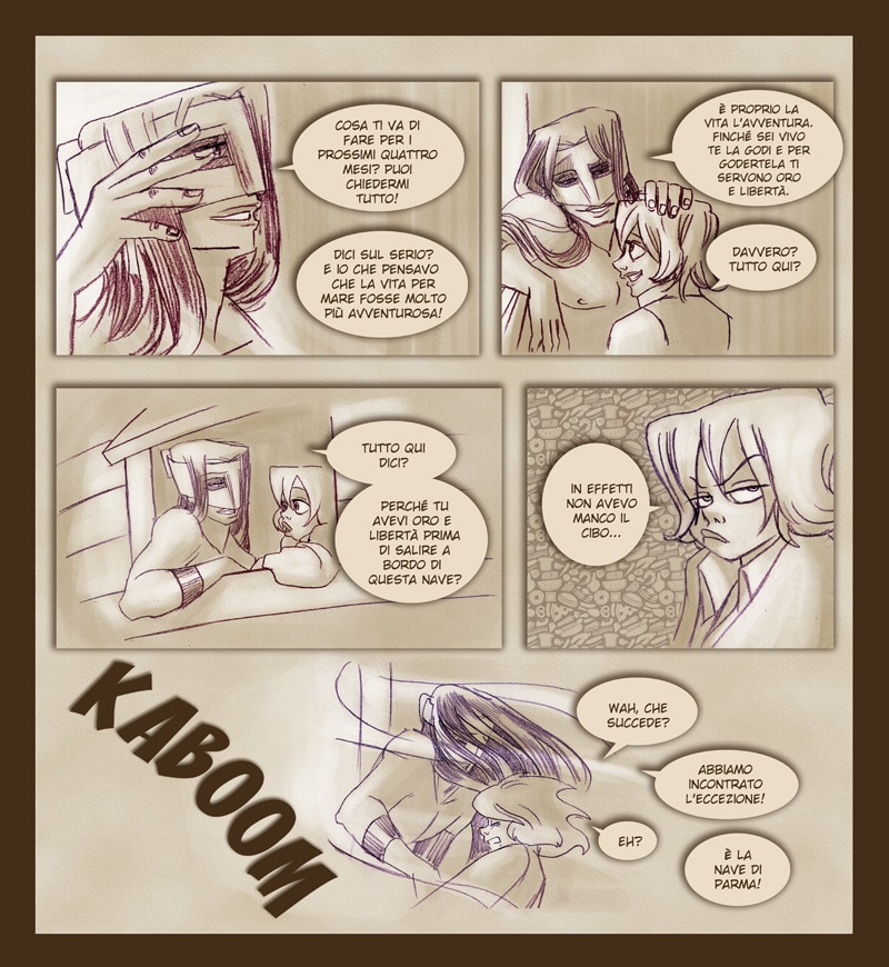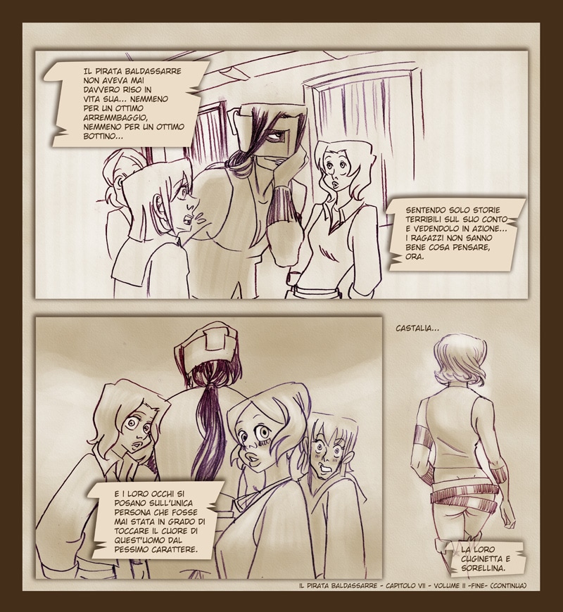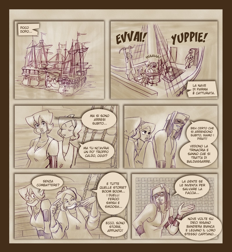 Fortunatamente per lui, la diretta interessata troverà per lui una soluzione al problema... soluzione che catapulterà lei e le sue sorelle in una difficile vita su una nave pirata in pieno Mar Mediterraneo!