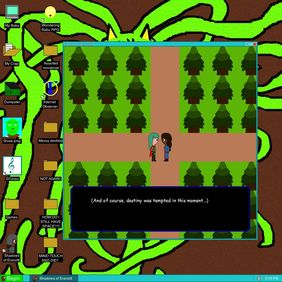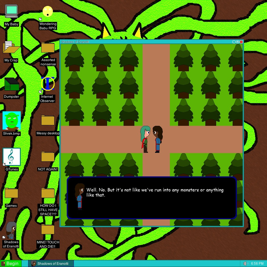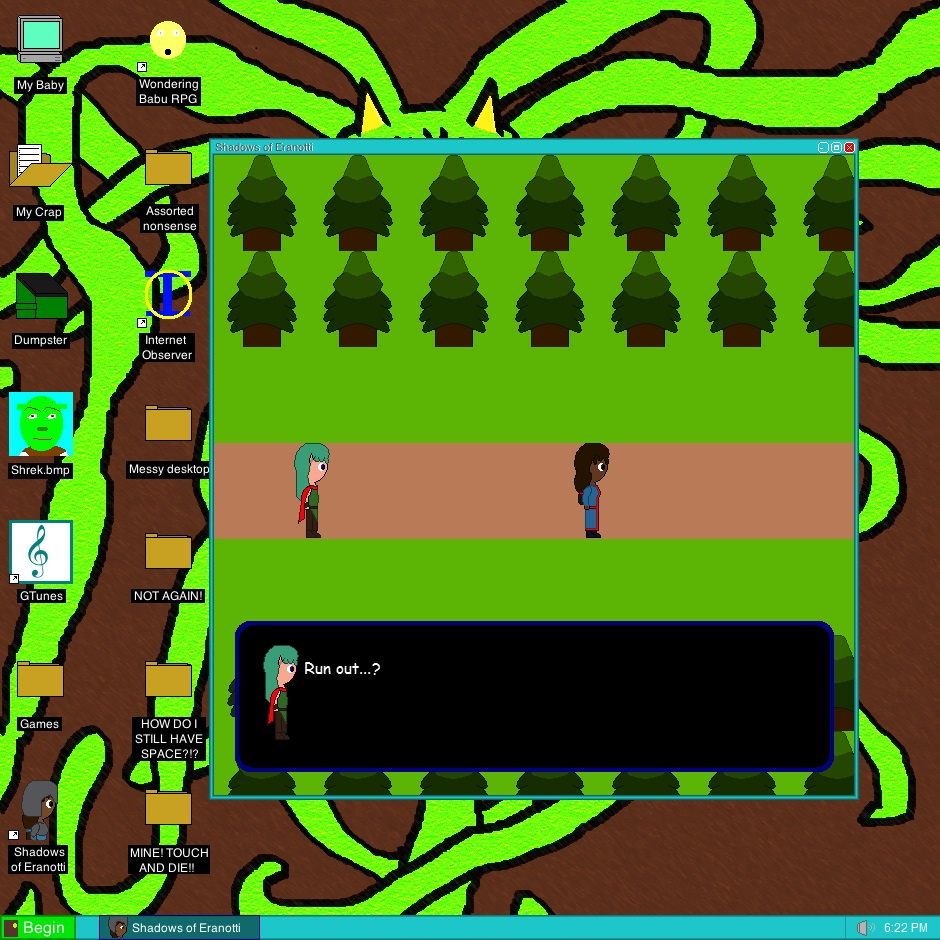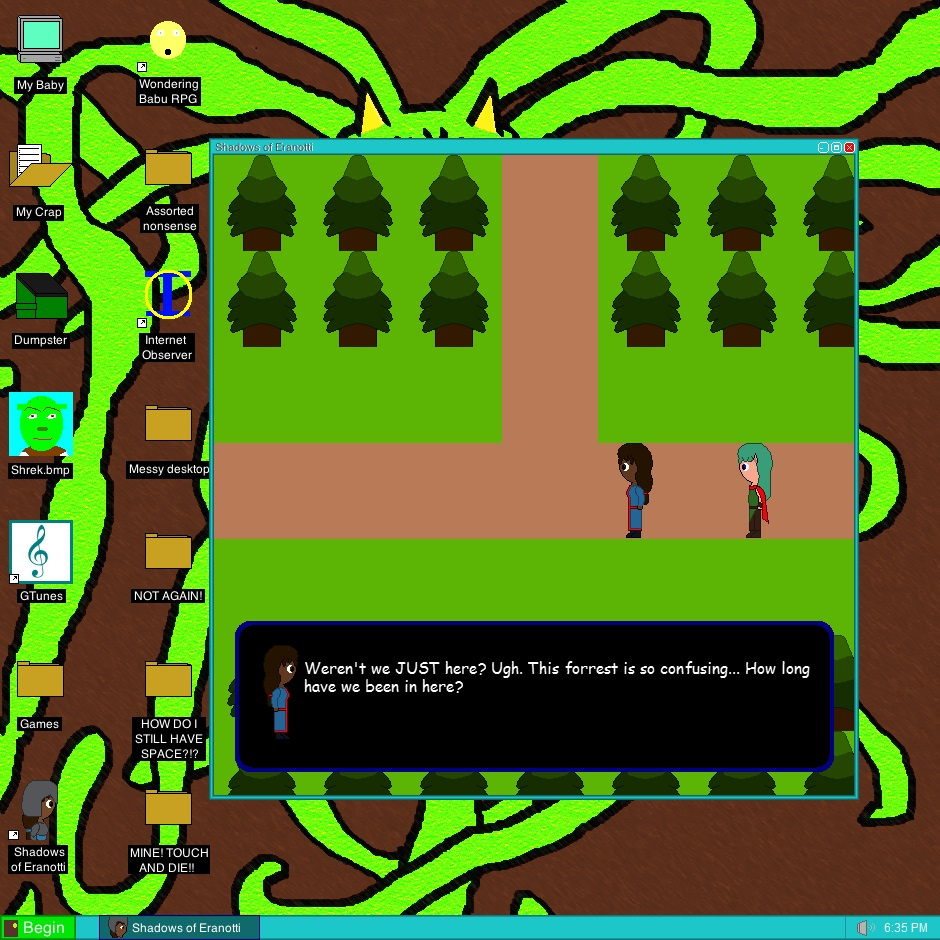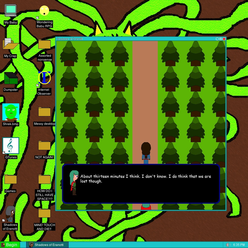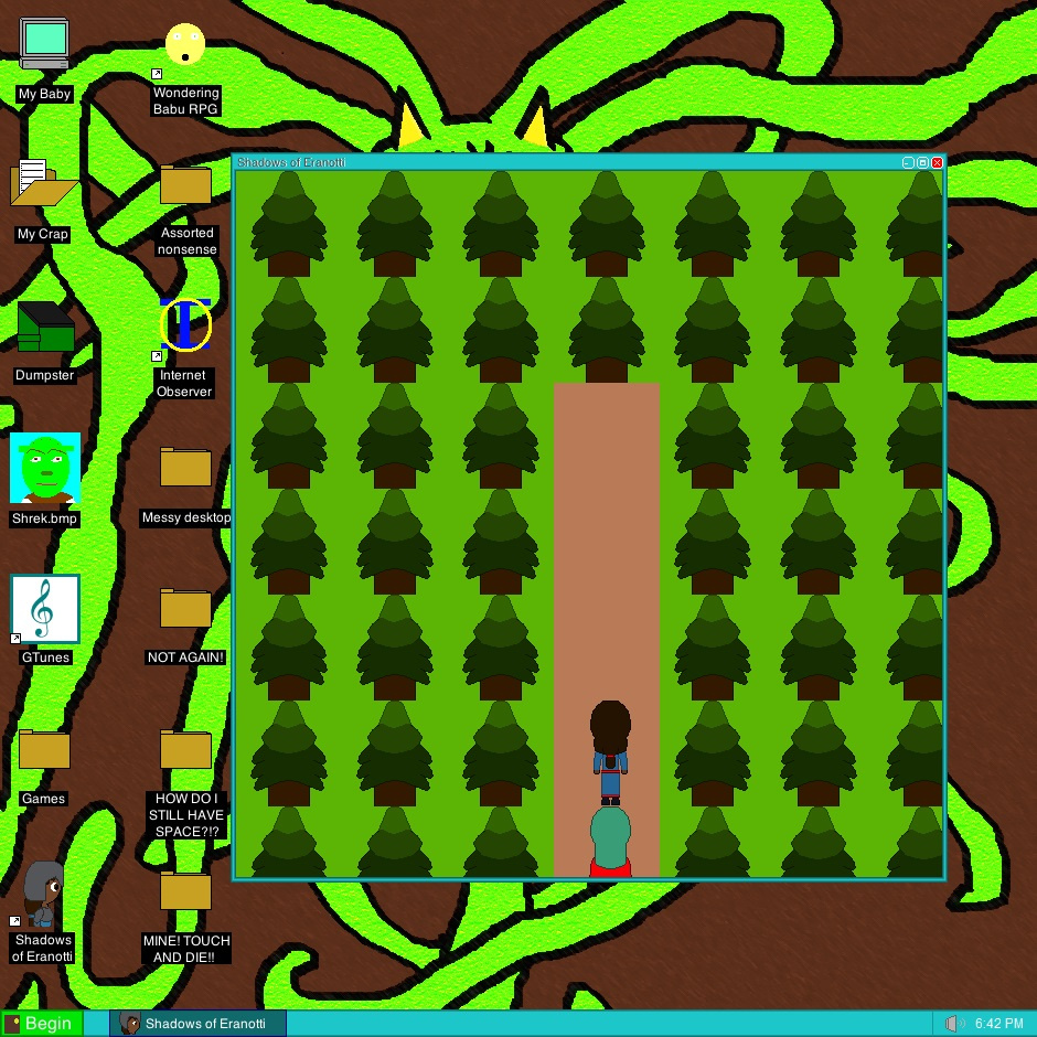 Instead of making a bunch of still frames of forrest background, I made a bunch of moveable grass and trees. It worked much better. Oh, I did mention that I made a program to make these right? (I'm so lazy aren't I?)