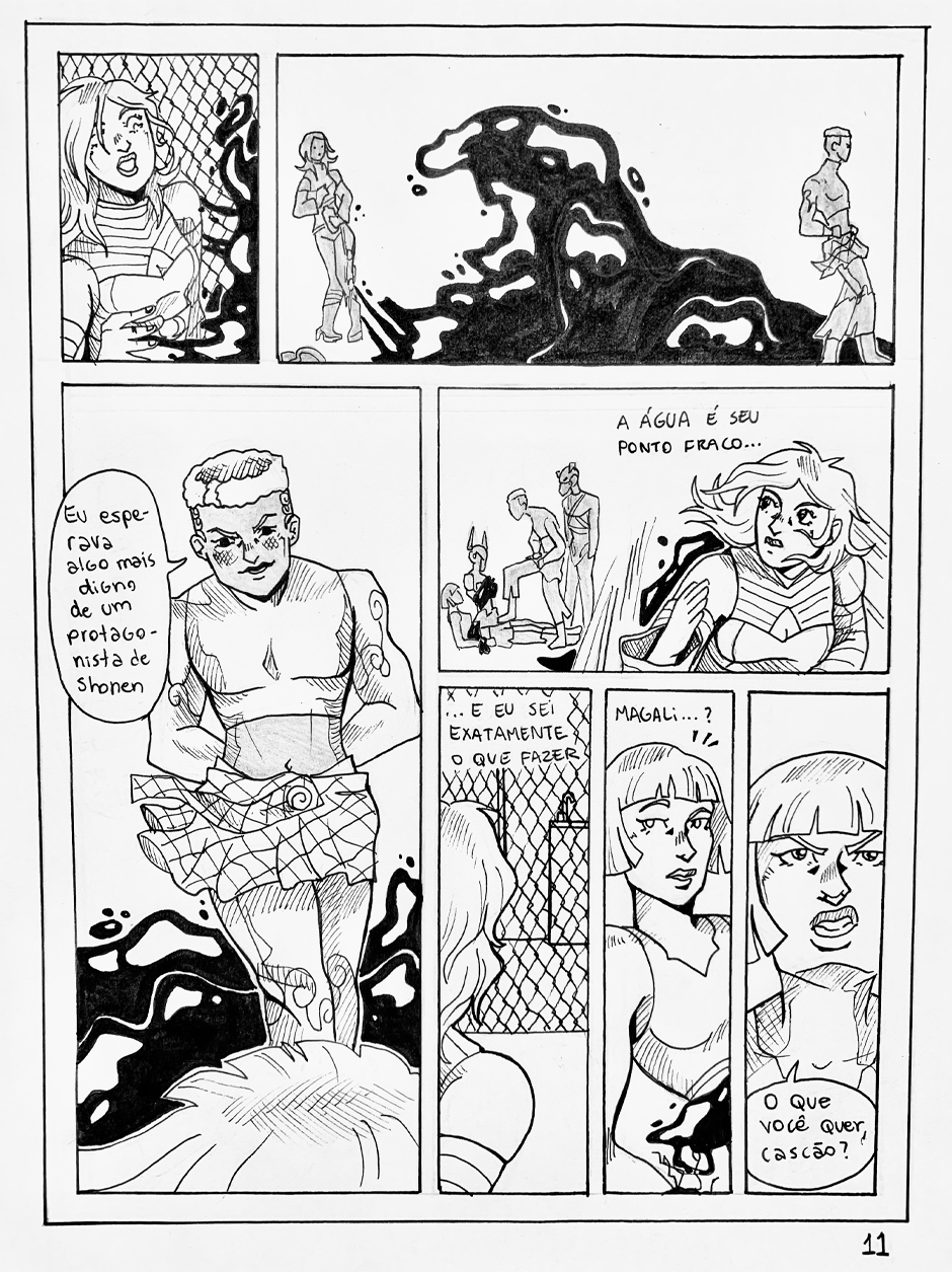 Ao chegar na quadra, Mônica e Magali encontram Cascão, que está mais que pronto para enfrentá-las.