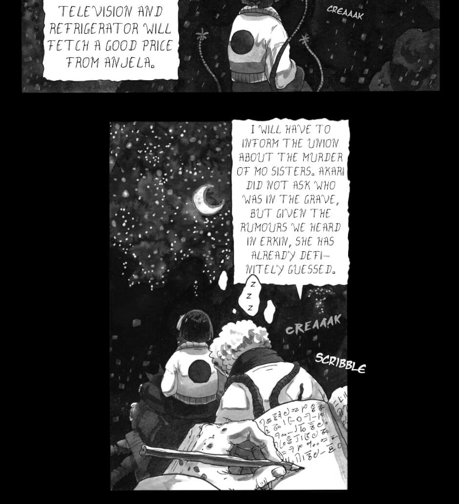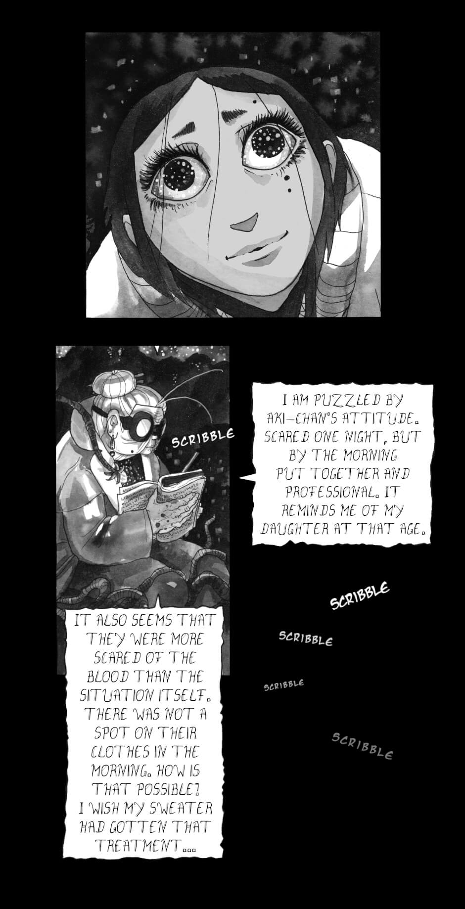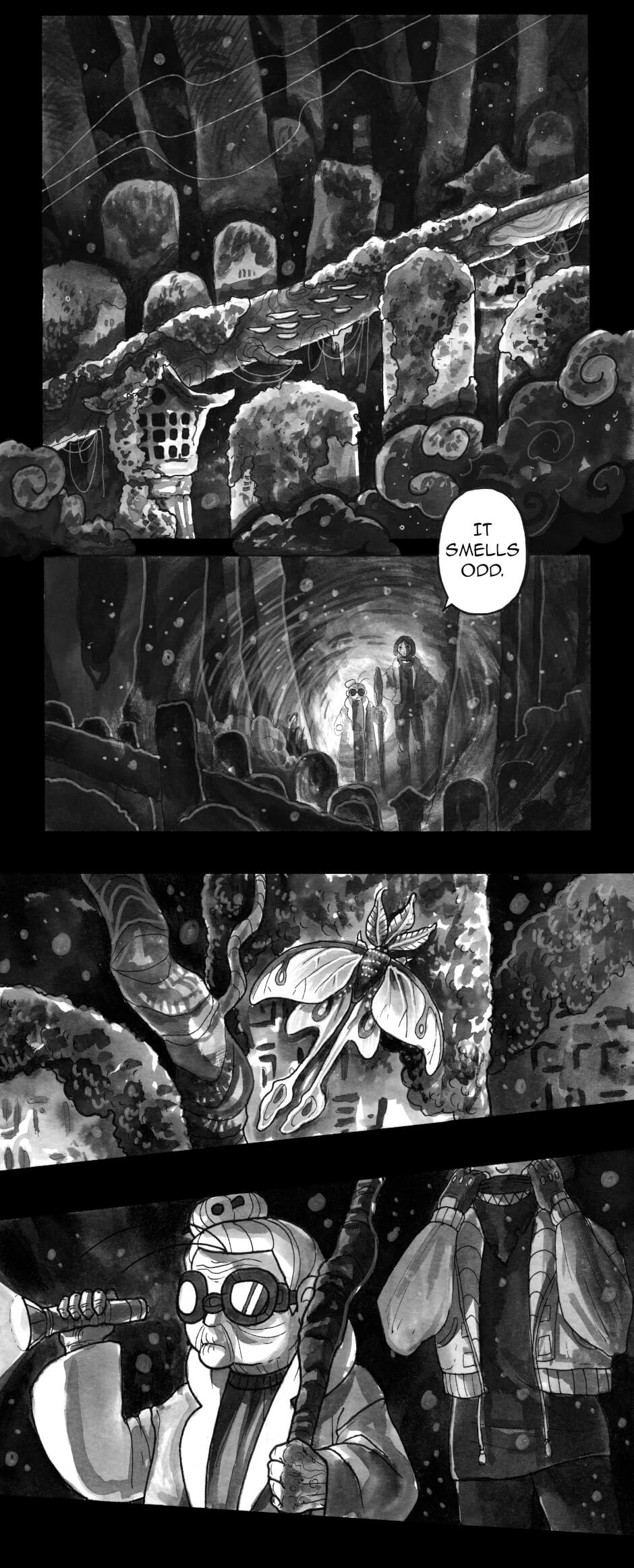 In other words: queer rep galore, badass grandmas, murder, mystery, mechanical worms; all painted in ink by yours truly.
