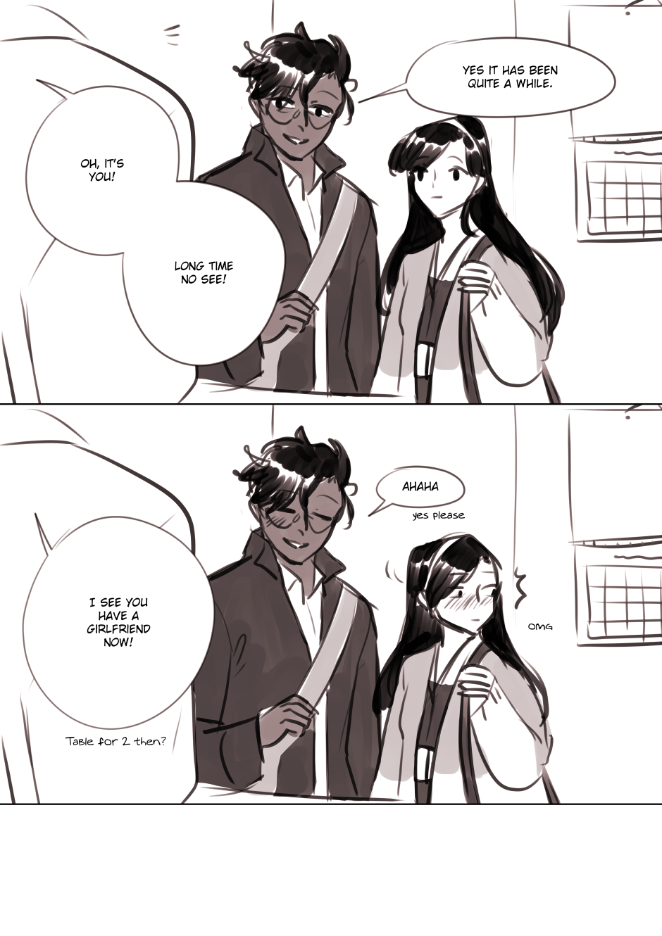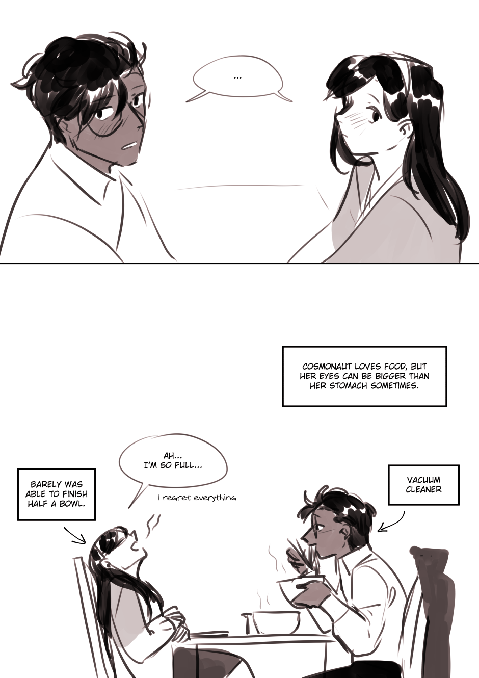 A slice of life AU of my main comic "hero and cosmonaut" (https://tapas.io/series/hero-and-cosmonaut)