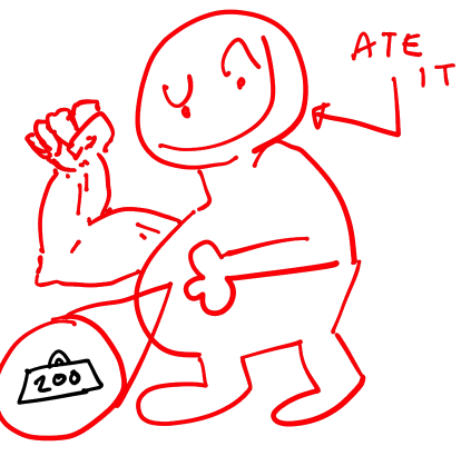 todd has a really big tummy and simply eats the weight. maggot girl is dumbfounded