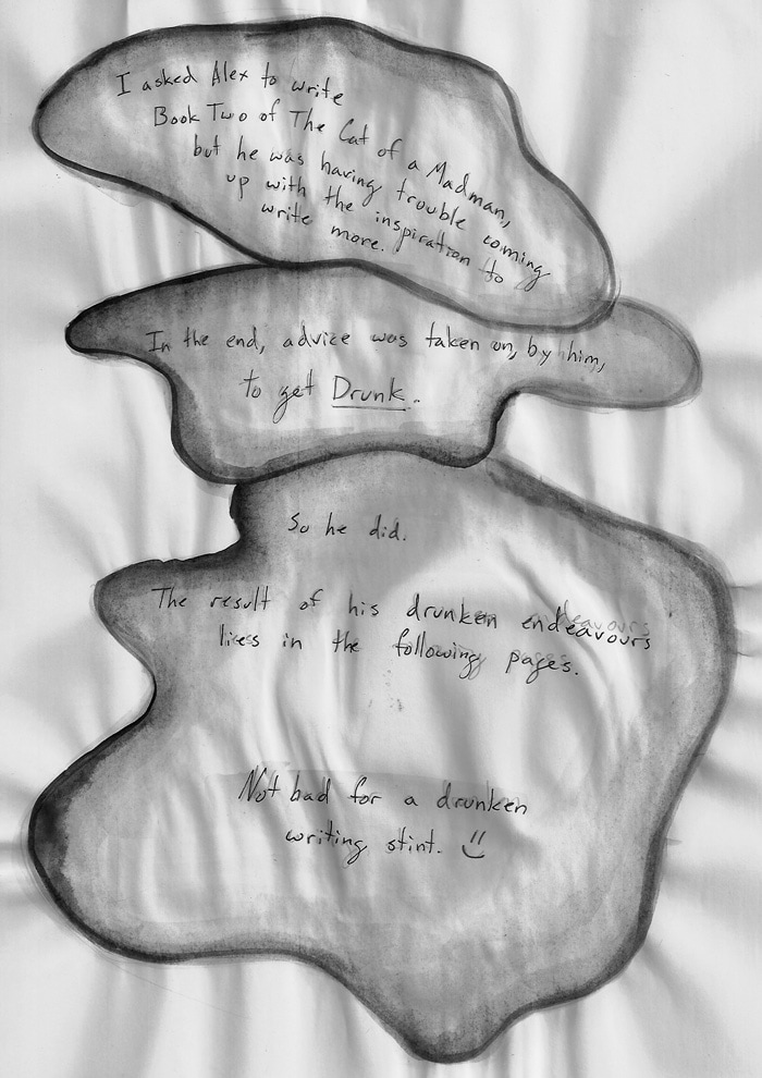 The Cat of a madman is not your typical comic. It is the idea of a comic mixed with fine art and the strange three dimensional quality of layered paper to create an otherworldly feeling
