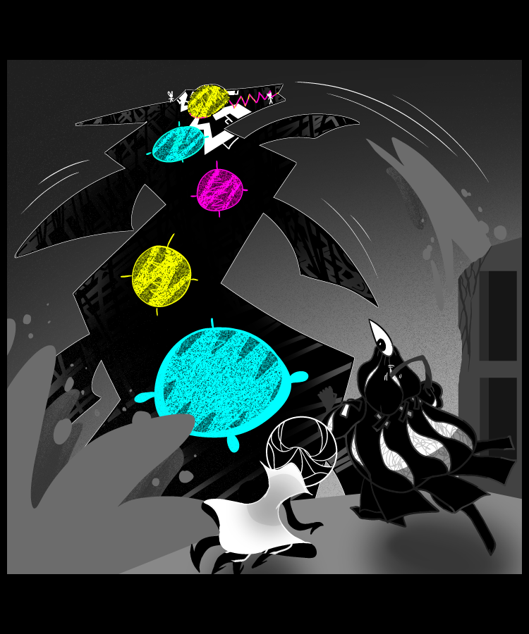 In honestly I felt so rusty making an action sequence. It always made me nervous if it's 'too messy' or 'not easy to follow'. In this case... there's a few here I'd definitely redo if I wanted to. But I know I'd get too caught up redoing the entire thing.