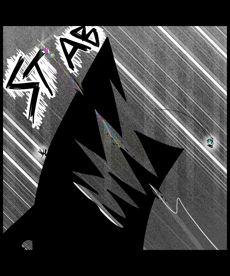 Okay so, I remembered I was thinking 'this comic would be cool to introduce that falling dude'. I wasn't thinking that at this exact point. Too many lines. Hand hurty. Much regret...