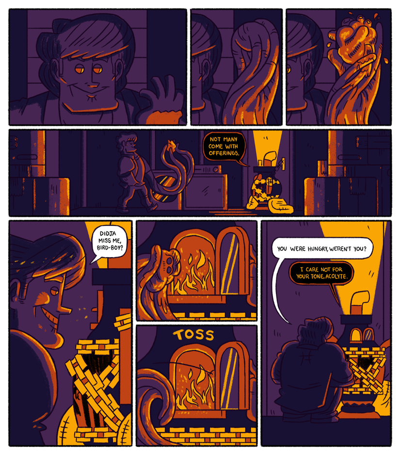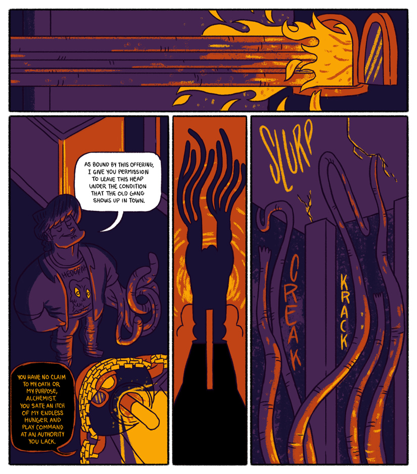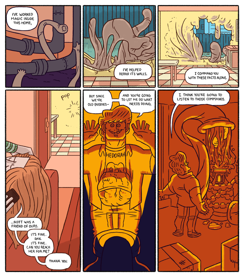 This update is about being a bad person and feeding a fiery abomination the organs you ripped out of the gay math teacher you killed last night. Conrad sets in motion a contingency plan and finally gets around to actually patching up the house. For all his evil powers, don't think for a minute that a young Conrad didn't watch Home Improvement and grunt like Tim Taylor attempting masculinity.