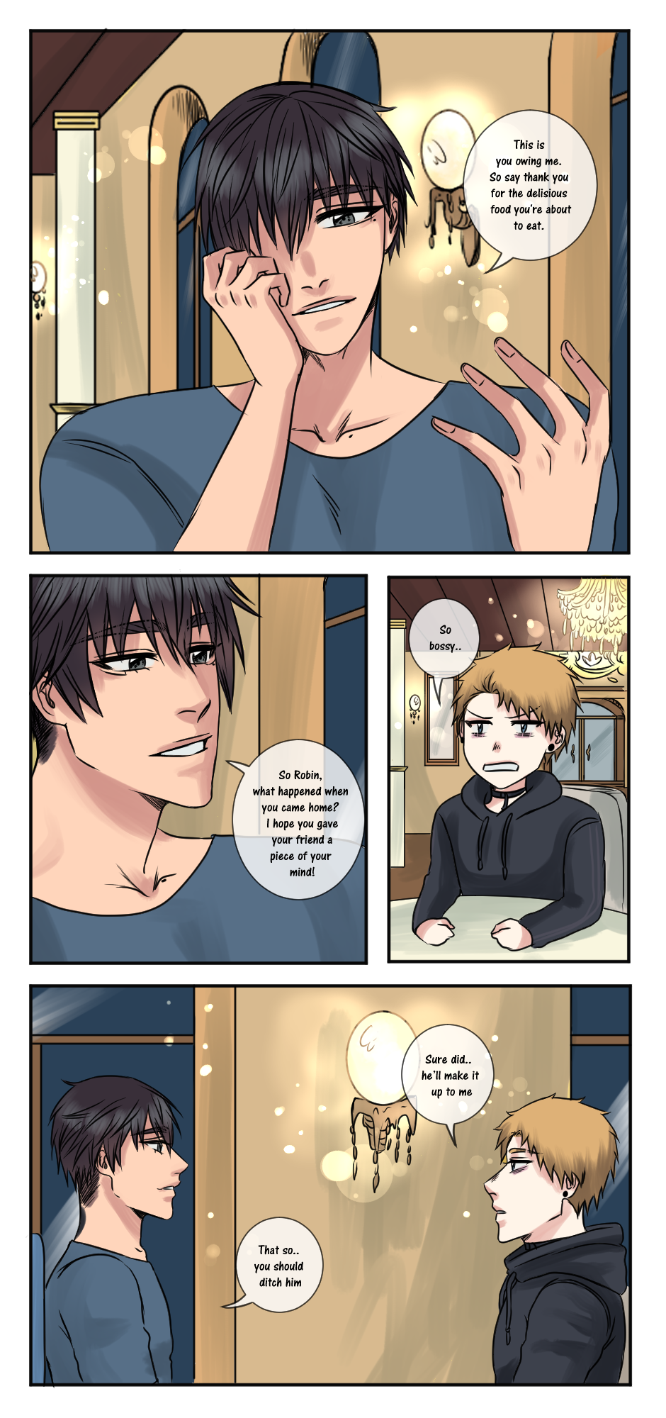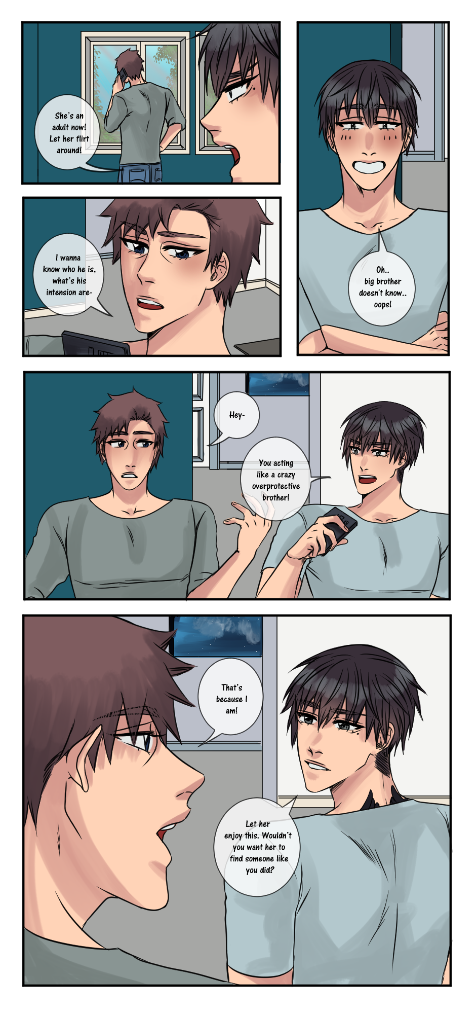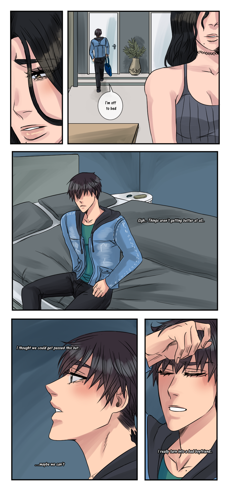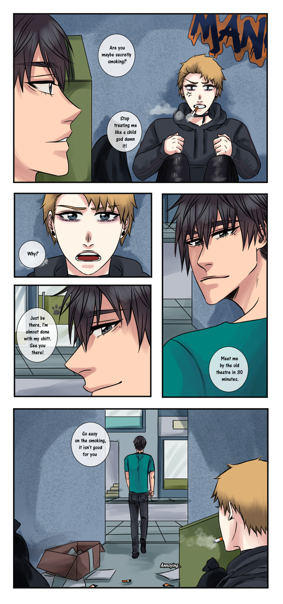 Second part. I decided to just uploade it all, cause i might drop the comic or at least it'll be on hiatus. I haven't really been drawing all that much and i don't really like tapas as much i used to either. Thank you for everyone who has followed me and read both my comics!