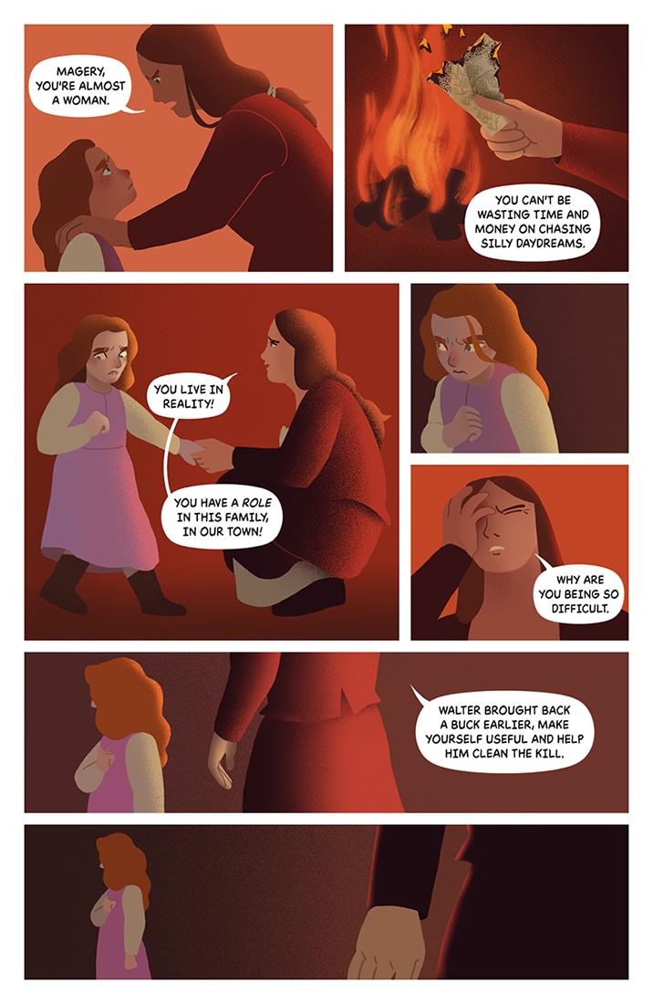 The villagers whisper of beguiling spirits beyond the walls. After a vicious storm, Magery — a local huntress — is about to meet these strange beings stranded in the woods. She must push past the presumptions of her village and discover for herself the strange and the unknown.