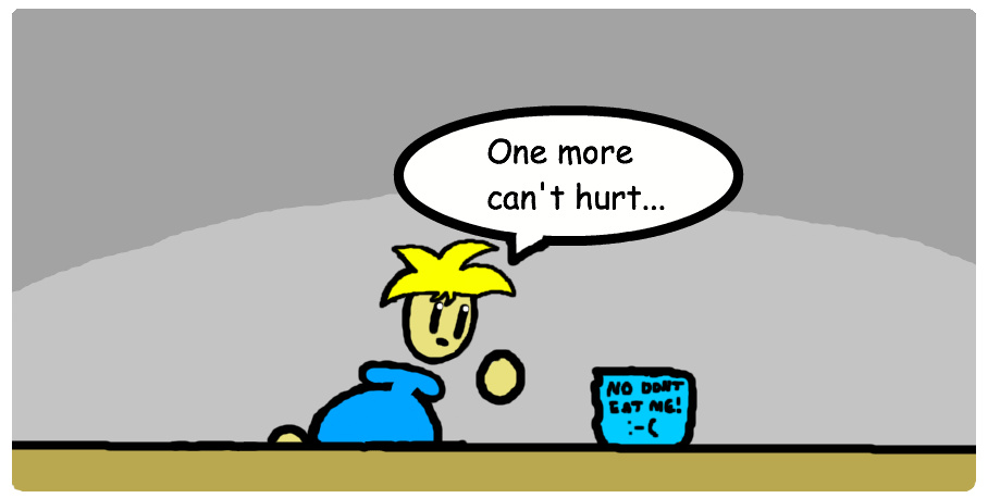 Wouldn't it be "One more couldn't hurt.." Wait, he eats sugar just plain sugar? How does-- whatever xD Good comic