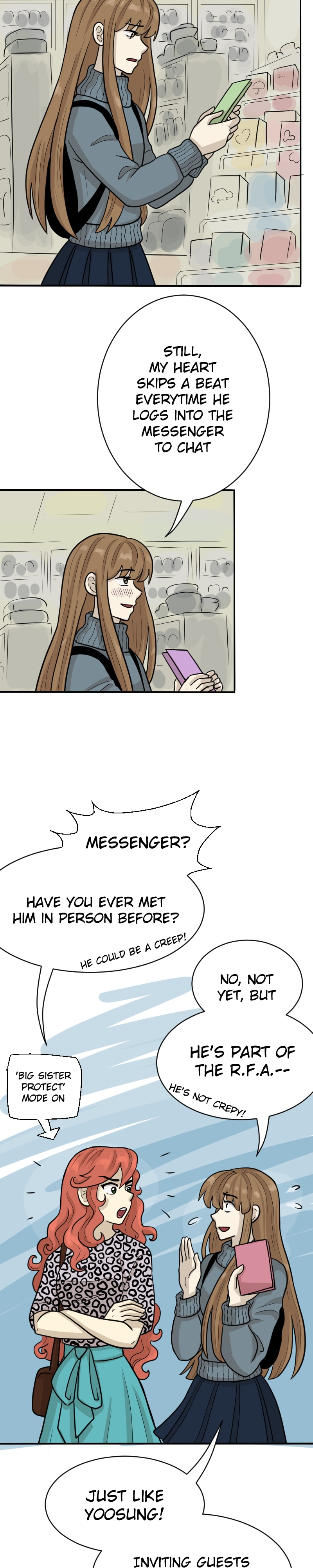 Mystic Messenger Fan Comic. A run-away girl stumbles upon an unfamiliar app downloaded on her phone. Connecting to an Unknown stranger, she is guided to an apartment of a recently missing member of the RFA. She is forced to join the organization and stay at that mysterious apartment. Will she uncover their secrets? Fall in love? Or take a totally different path?