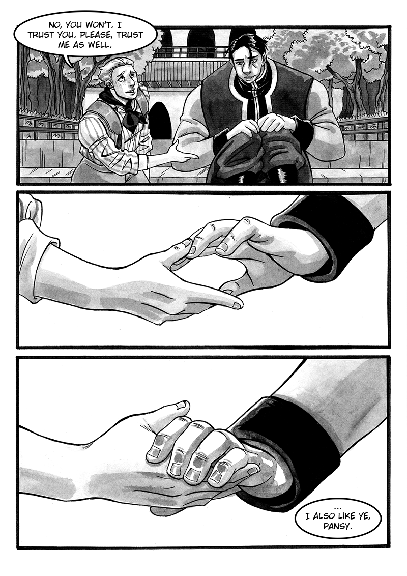 An elite squad lieutenant and a painter get together and have to help eachother to deal with issues from the past and present. Pansy is a mature story focused in how a couple grows together in front of adversity, with a fantasy war background. The chapters will be uploaded in parts every tuesday throughout the month.