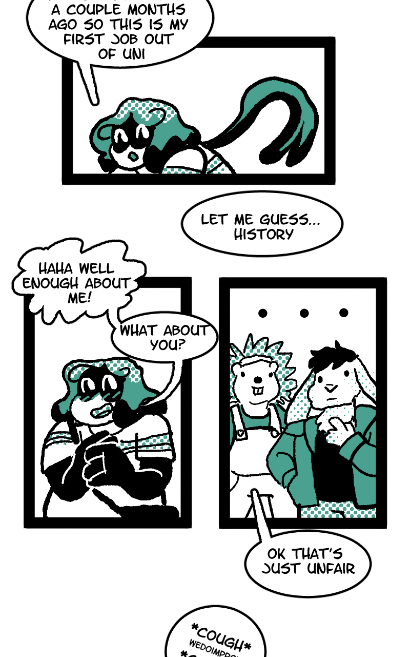 part 4!!! happy to be finally having us meet these guy, I have no idea what animal Sean is and I don't care enough to redesign them