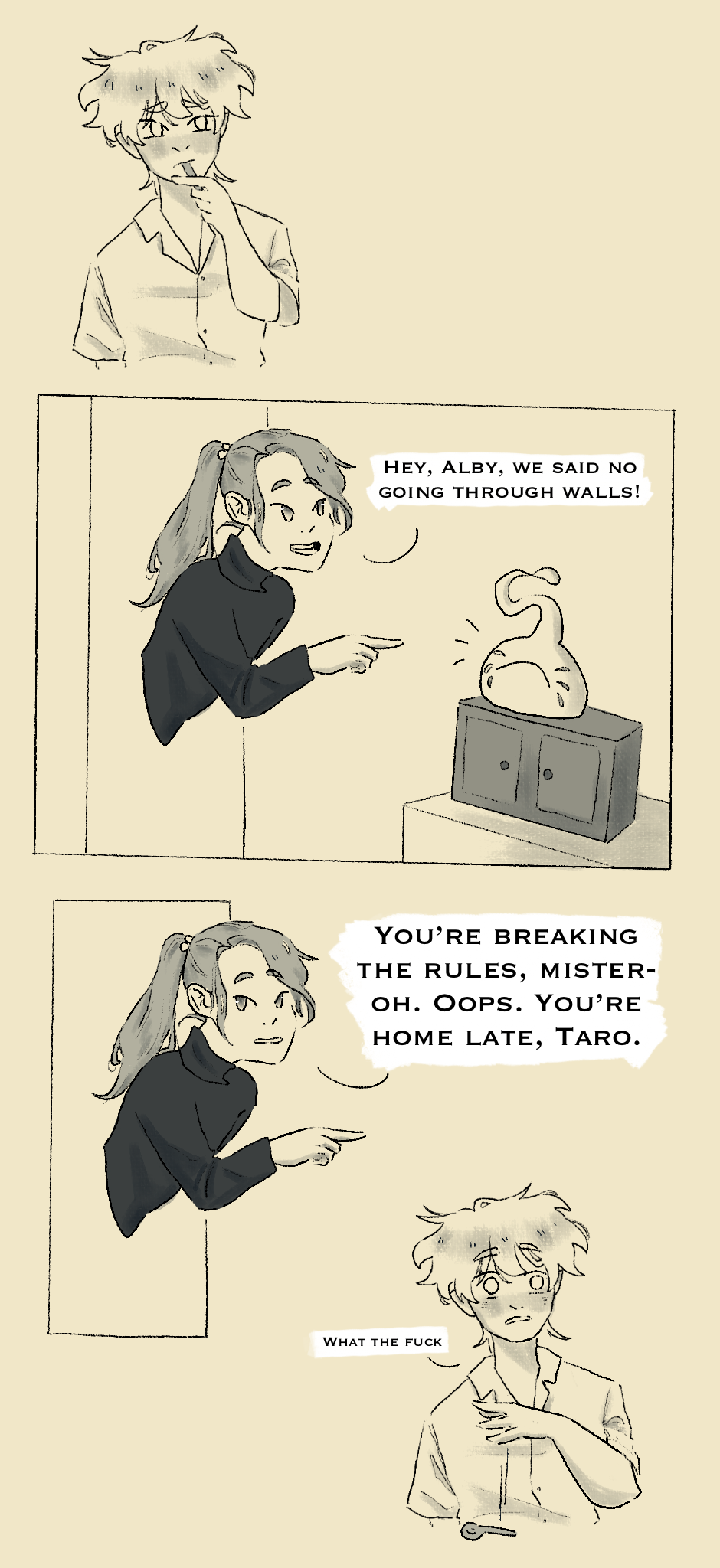Aaaaaaaaand we're finally done with the introduction part of the comic, and we can now move on with the plot! :D From now on, we'll be seeing a lot more of the supernatural part of the comic, along with the boys' past! I'm very excited to share everything with you ^-^