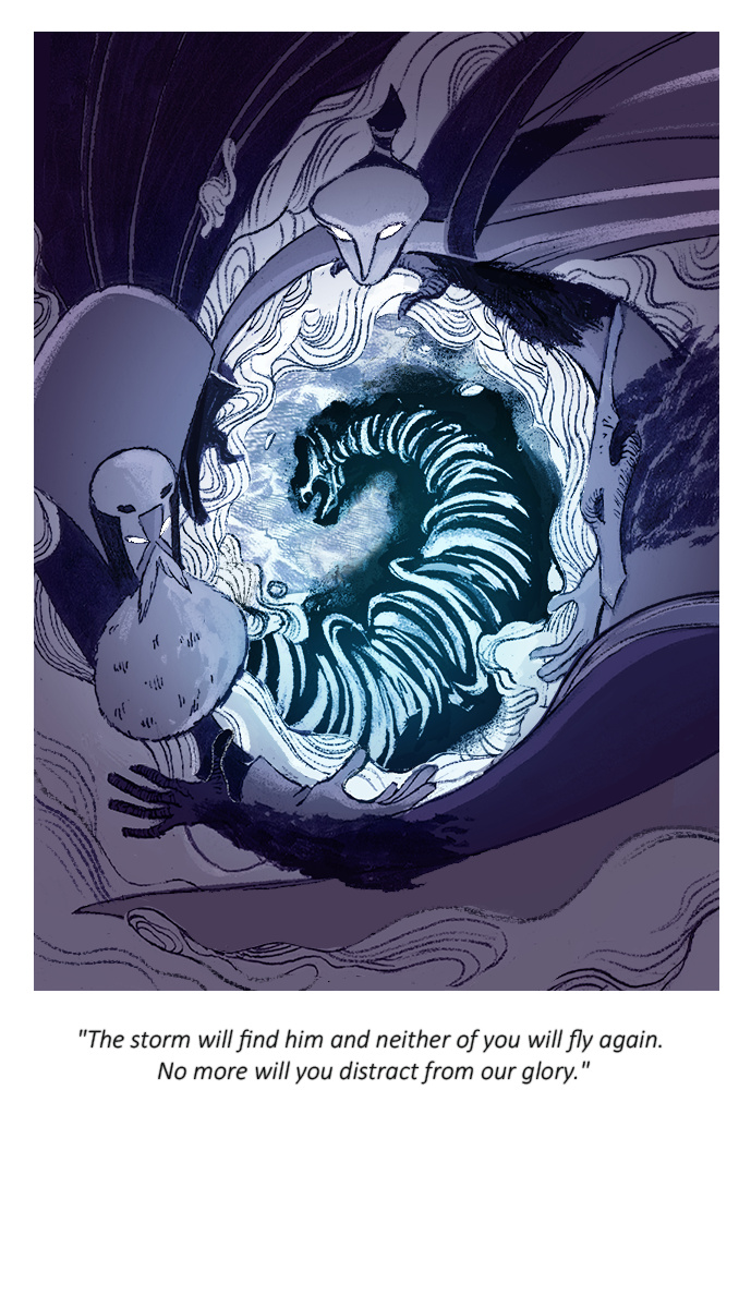 "The storm will find him and neither of you will fly again. No more will you distract from our glory." Apologies for the slightly later update today, thanks to every one reading so far!