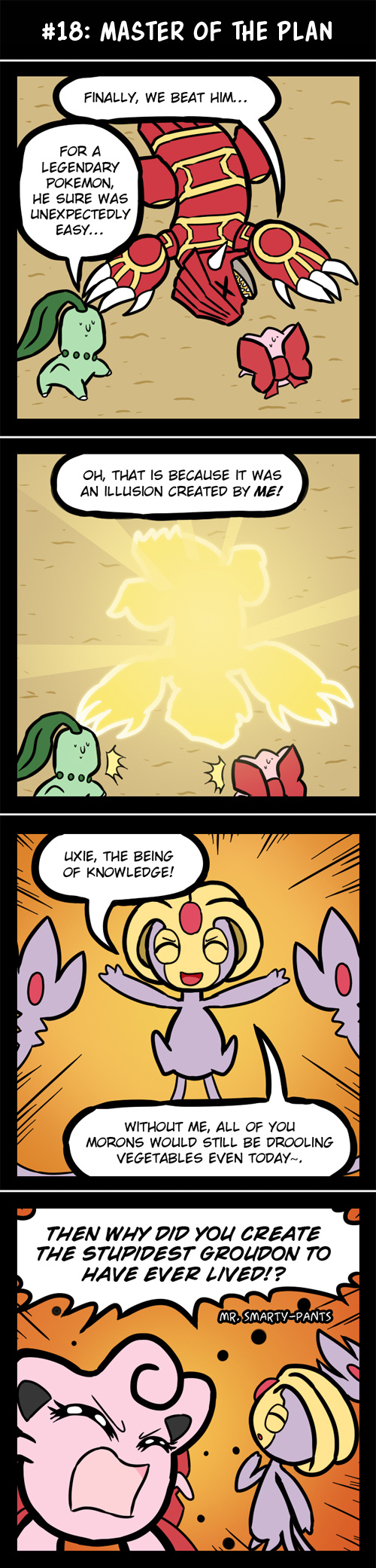 I think Uxie just likes to mess with people. And the funniest thing about that is the fact that even though he doesn't actually mess around like that at all in the games, for some odd reason, it always felt like such a thing wouldn't be *entirely* out of character if he did.