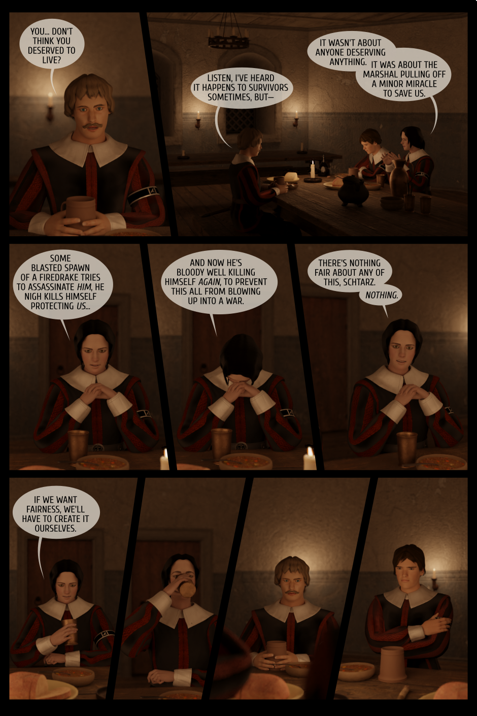 Next week we get to see the light of dawn. I can’t believe this first day took almost two years to produce, but I guess that’s Webcomic Time for you. Things should pick up speed a bit now :)