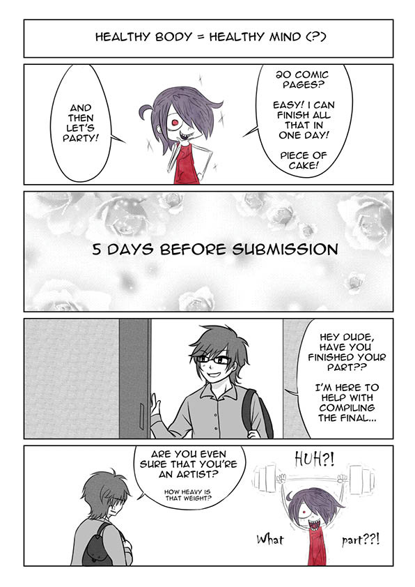 In my defense, I really do love gym although the weights are a lie... I obviously lift heavier than that...I mean...Look at my big muscular body in the drawing