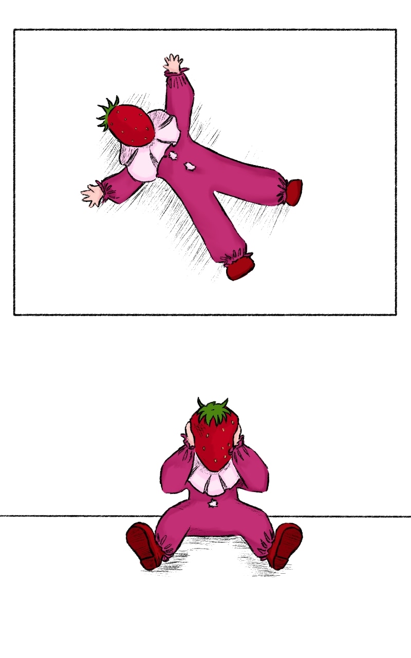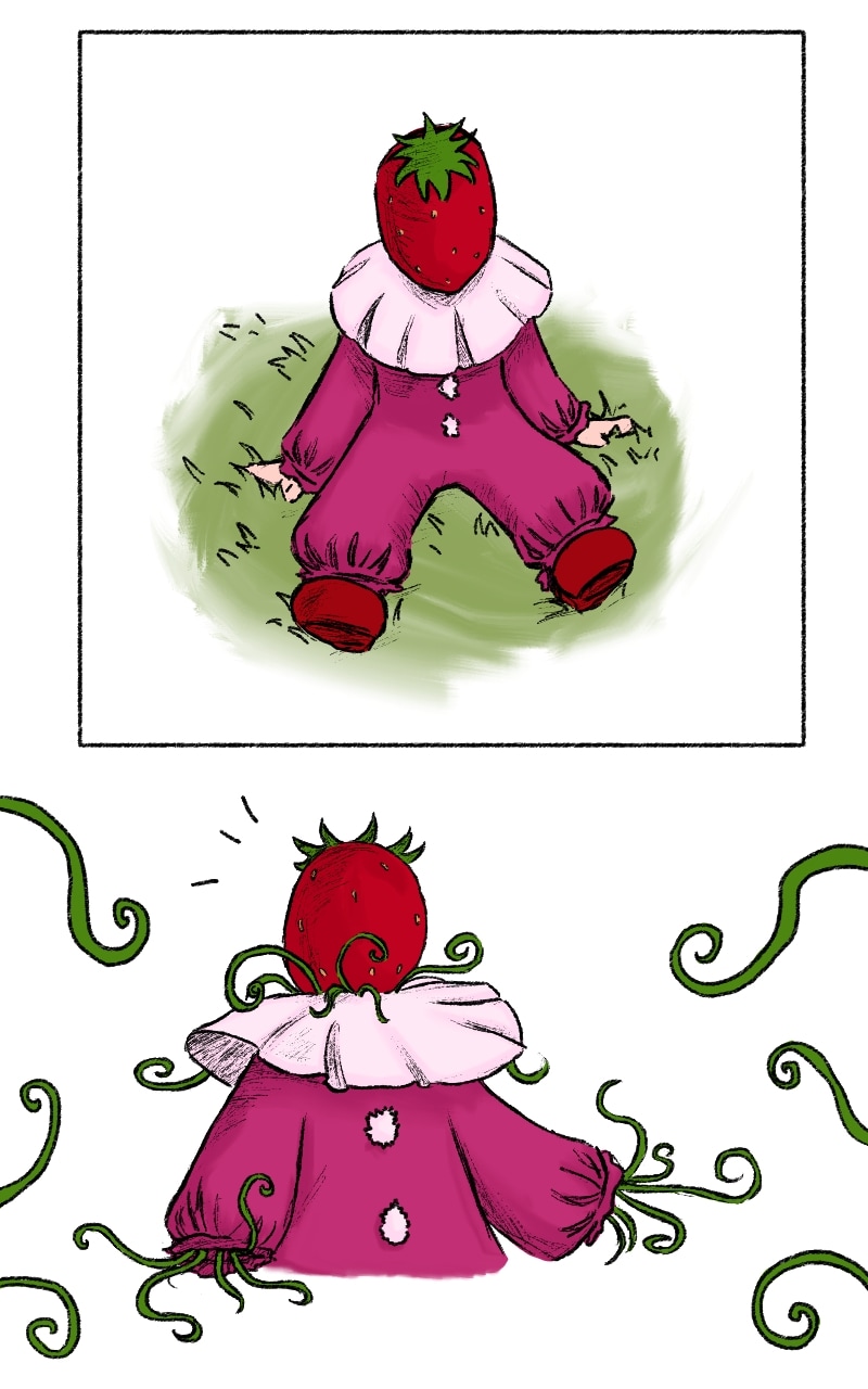 The little clown's obsession with strawberries may have gone too far...