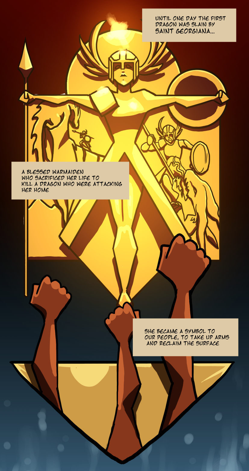 "Saint Georgiana" - Avoiding copyright since (insert date)... still though... it does have a truly epic ring to it. And it reminds me of Andraste from Dragon Age and Alessia from The Elder Scrolls. Female warrior saints rock!