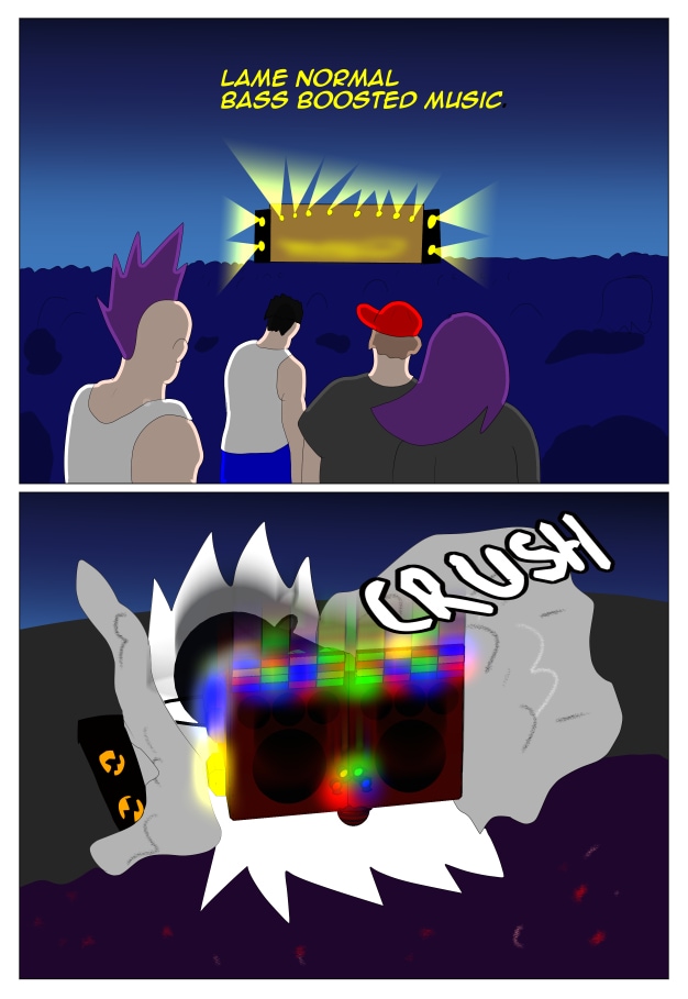 Reminds me of those cars that boom the bass. Sometimes the music is good and sometimes it's annoying