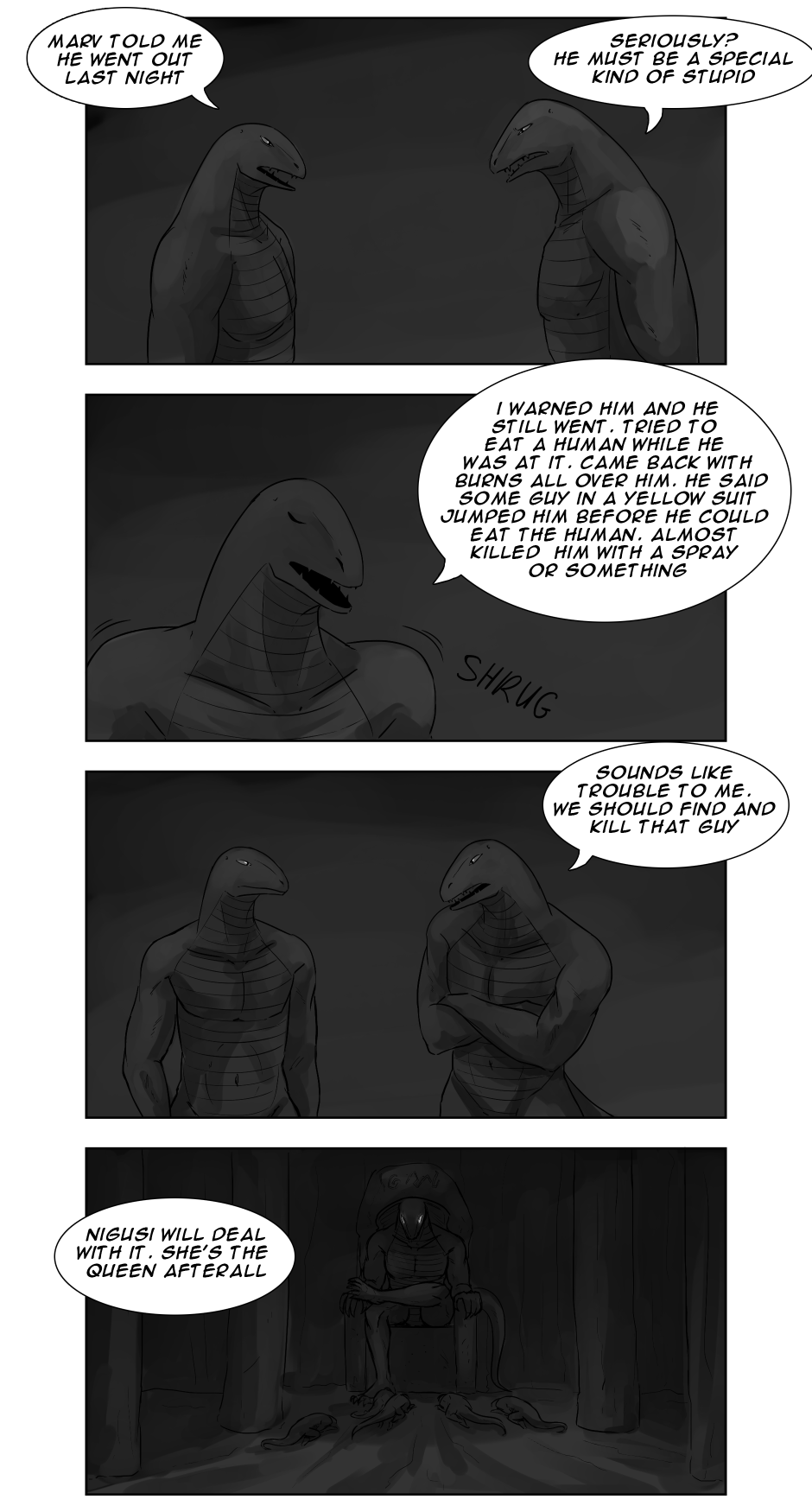 Lizard people are crawling out from under the ground, terrorizing the city at night, plotting against humanity. Ricky, an ordinary delivery guy, gets rescued from one of them by a man in a hazmat suit, and he can't stop thinking about him after that. Will their paths cross again?