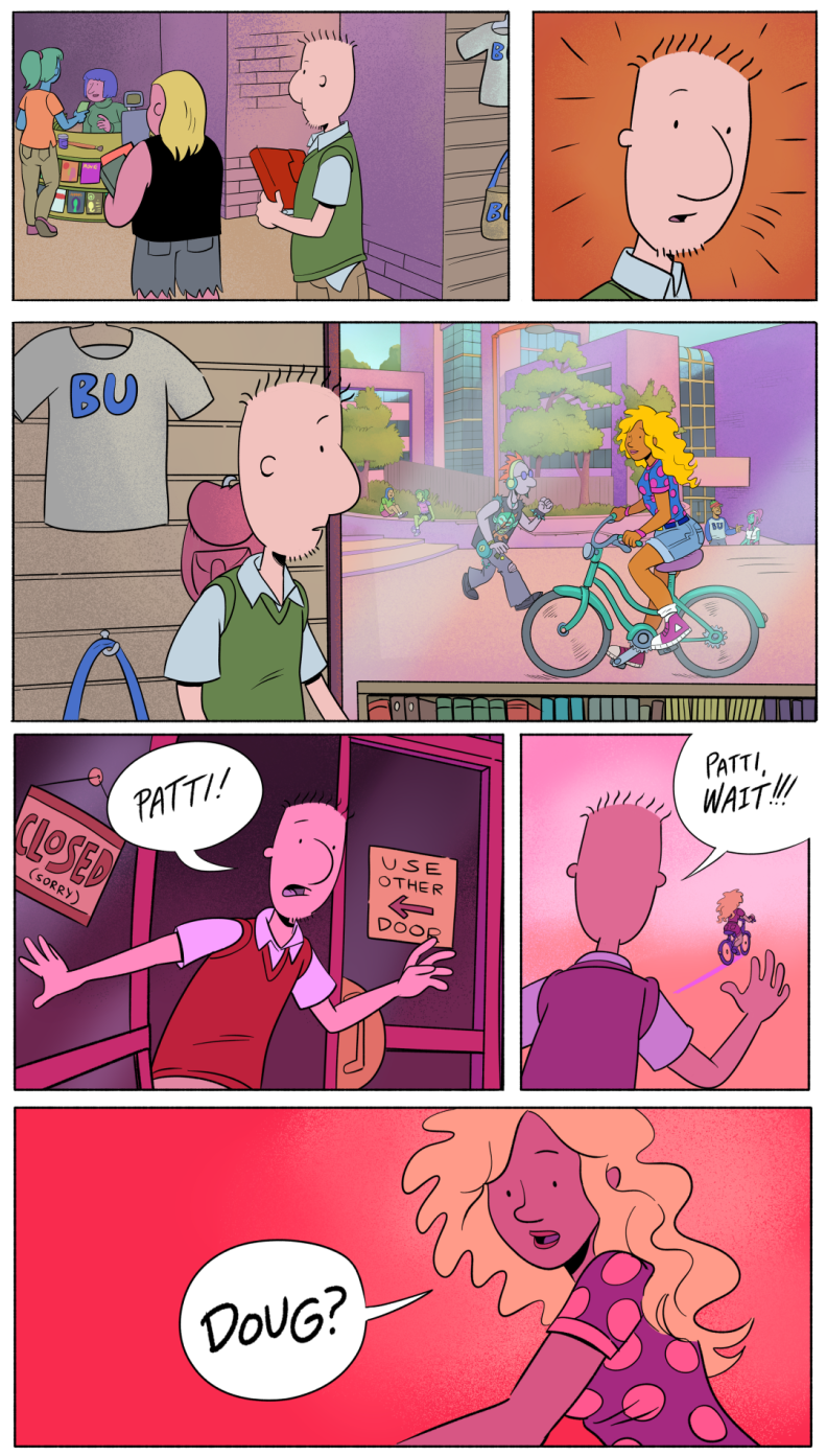 Like a lot of us, Doug had a lame time in high school, but college years are here, and so are a lot of old (and new) faces! Join us here at Bluffington University, good old B.U. !