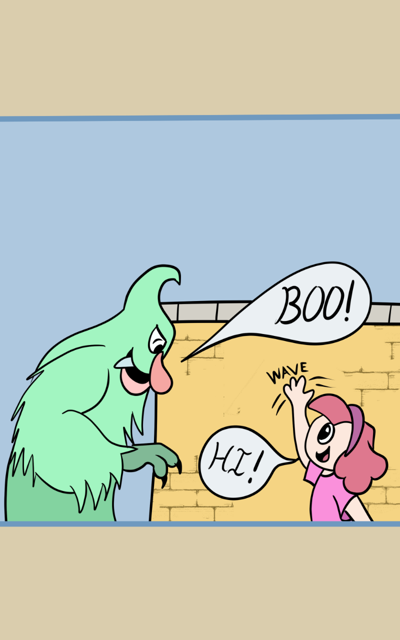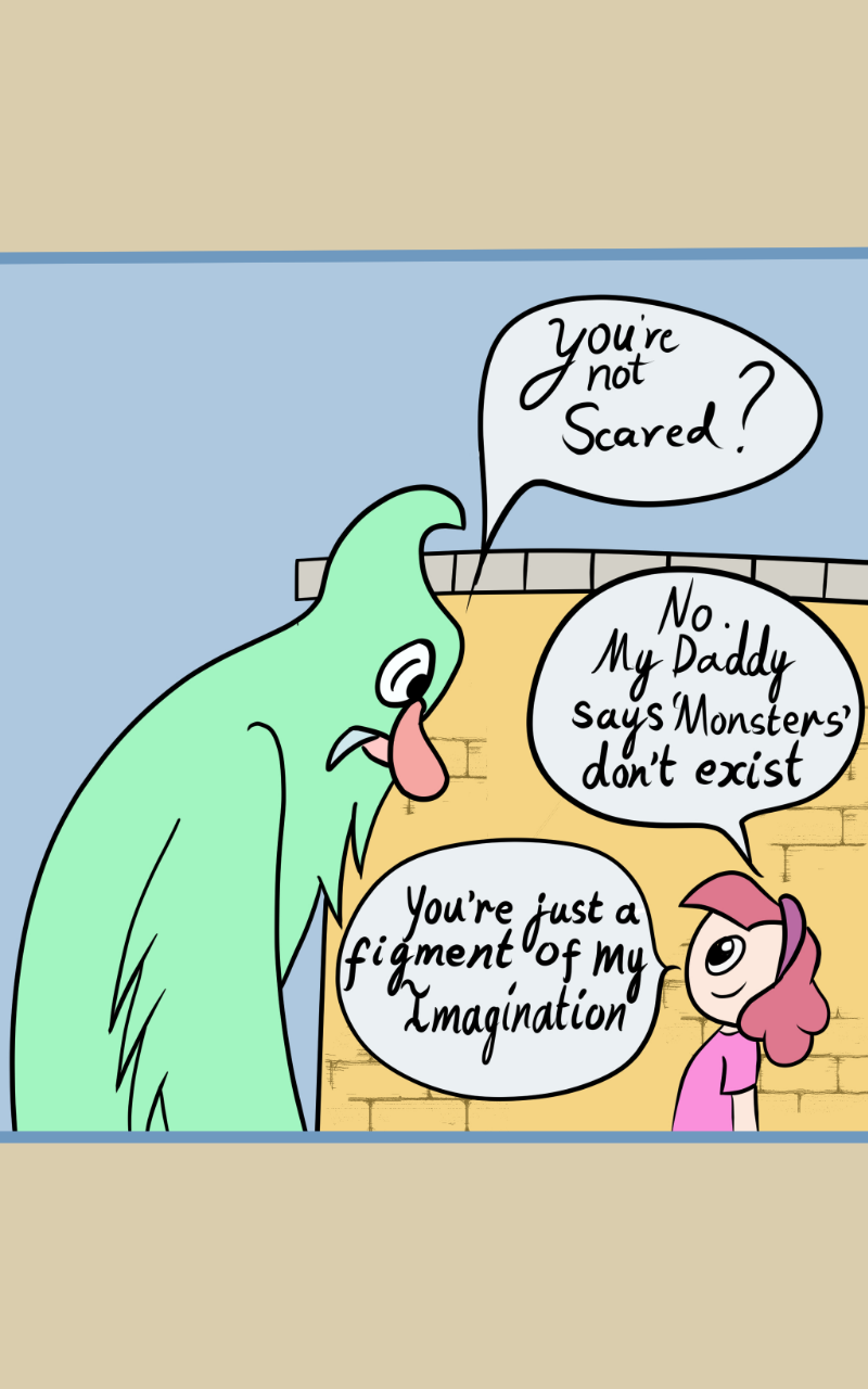 XD Looks like Mr. Monster got through with his scare tactics in the end, although he's mindblown abt being a figment yet he's not a figment :D love it lol