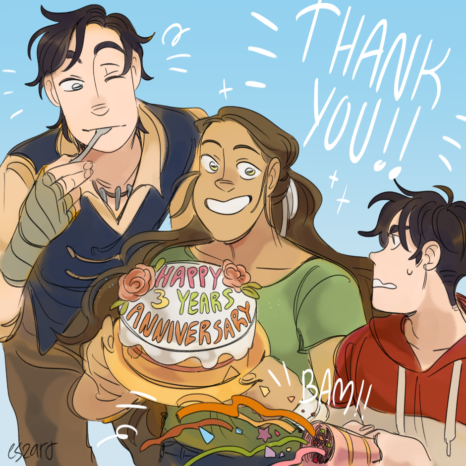 last week was the comic 3 years anniversary?? that just unbelievable to me to think it's been this long wow ;v; thank you so so much for all of you who keep reading it or just started it! also we reached 24k on webtoon this week thanks to the comic being featured by the staff pick! thank you so much and welcome to all the new readers!!