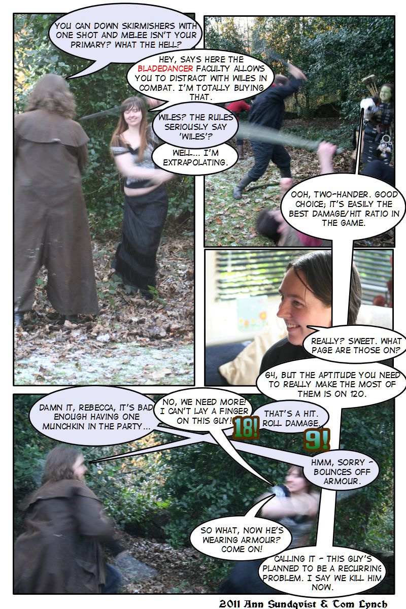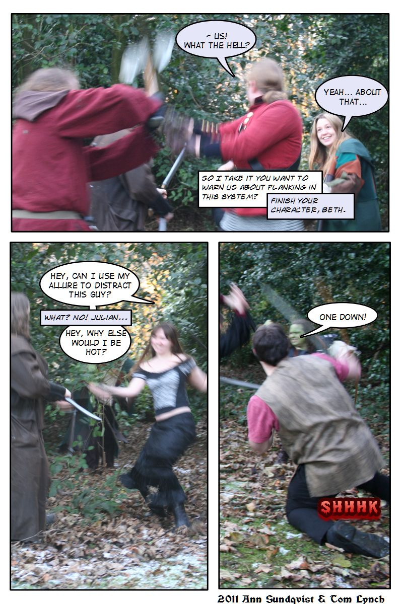 The Player's Guide To SISU was a webcomic created by Tom Lynch and Ann Sundqvist with the help of various members of Lancaster University Roleplaying Society, taking a look at both the characters and players that make up a roleplaying game. After its original site was lost, the project lay fallow, but through Tapastic we can restore it.