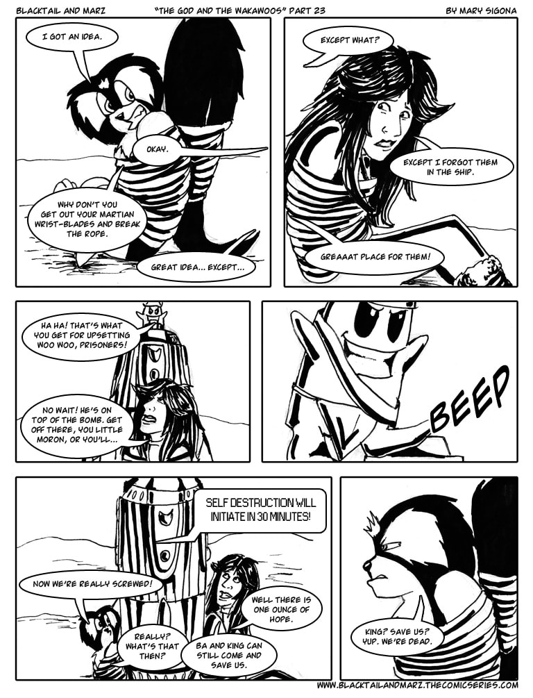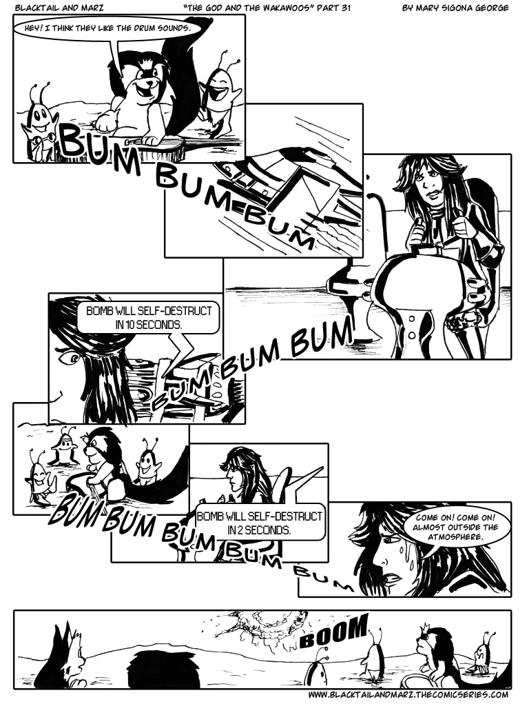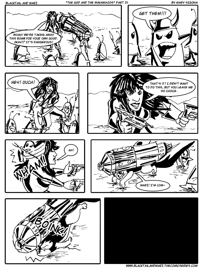 This comic series focuses on the story of Marz, the earthling/trained Martian soldier, and her alien companions Blacktail, King, and Ba. Together they travel through space and time on their Martian ship called Fire Wings, getting into a number of crazy and dangerous adventures from planet to galaxy. So hold on tight and get ready to explore the outskirts of space.