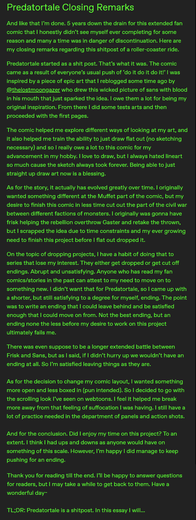 Final remarks on the series made on July 16th 2020. Series ran for about 5 years.