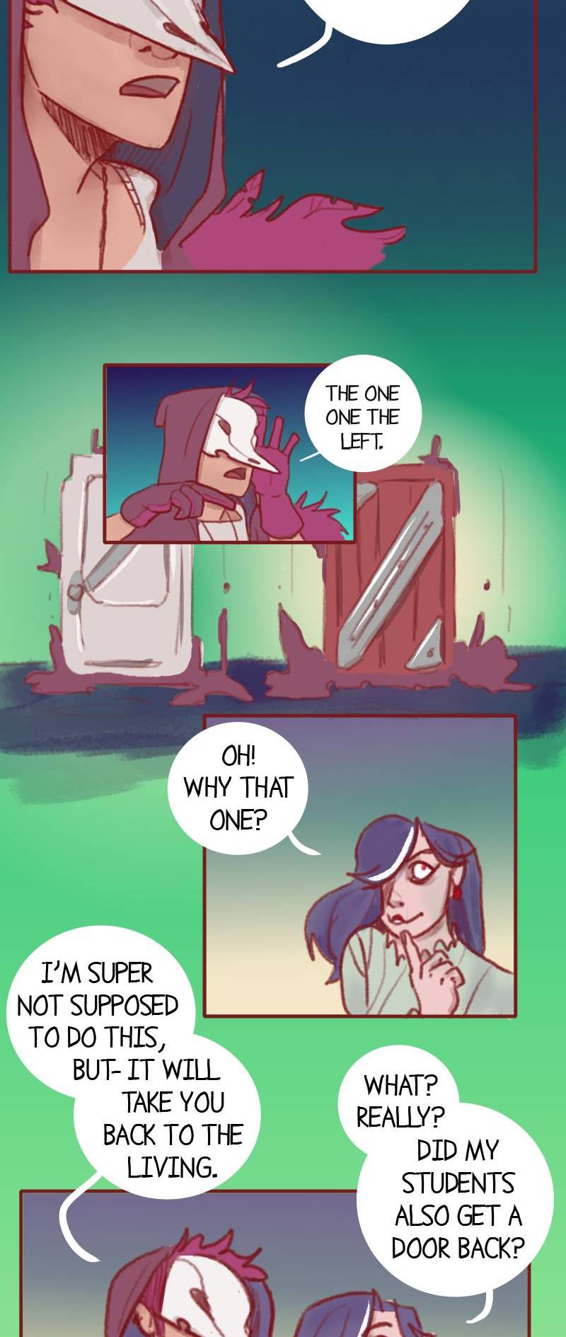 Our Heroine wakes up in a burned down classroom. Soon, a mysterious figure emerges, claiming to be her guide to the afterlife. With his help, the Heroine must find her soul before she can move on. However, their relationship turns out to have started much earlier and runs deeper than just of a guide and his traveler...